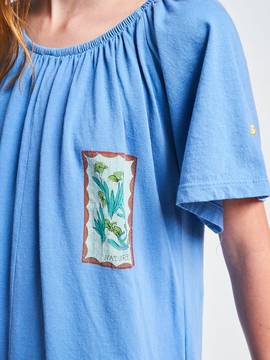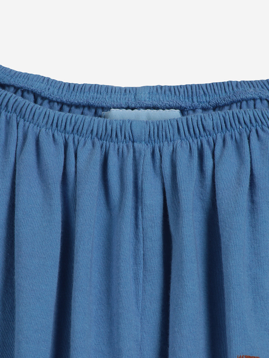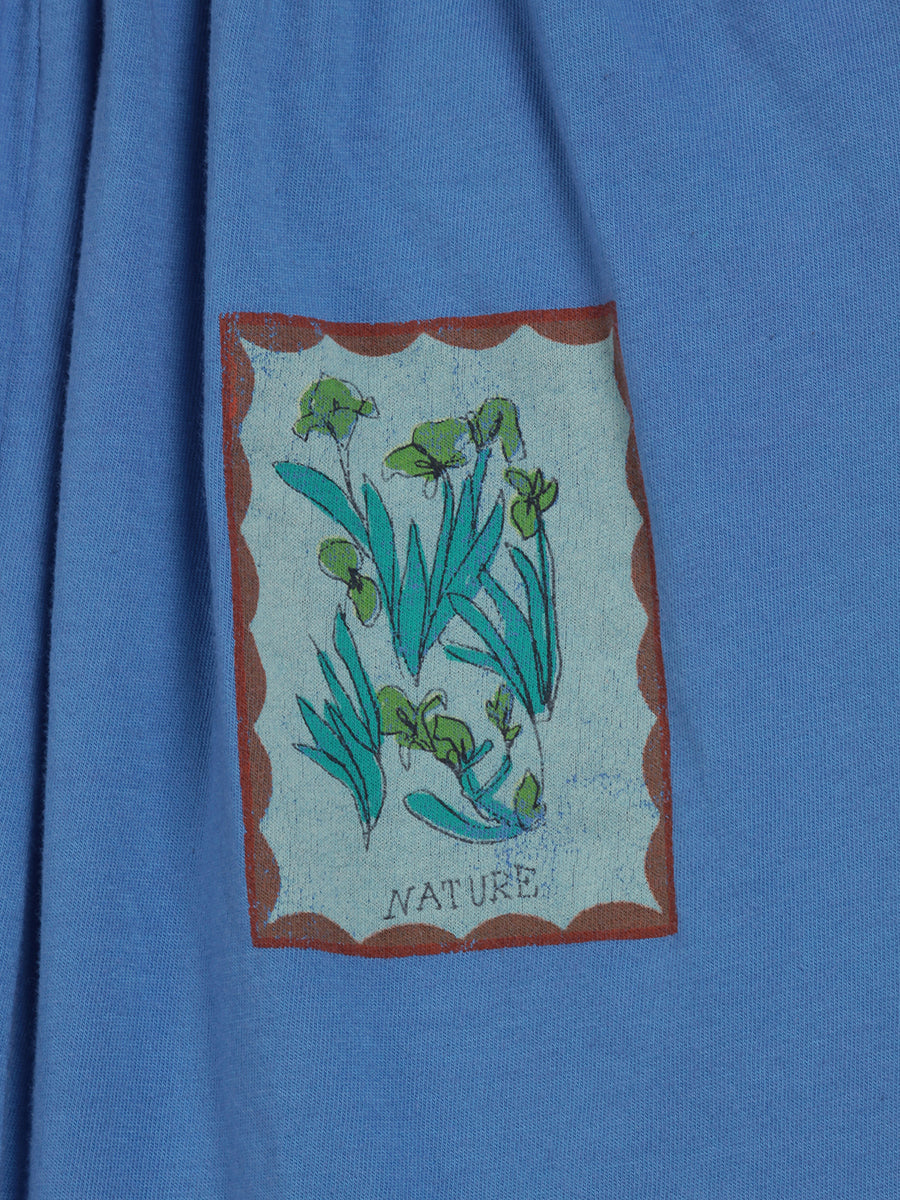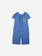 100% organic cotton. blue short sleeve overall. Designed with low crotch, embroidery, smocking stitching, midi length and off-the-shoulder. It has a evasé fit. Made in Spain This is an online exclusive item that belongs to our SS22 collection, I’m a Poet. It celebrates poetry and its’ attitude of constant surprise and wonder. All things before the poet’s eyes have the impact of what is seen for the first time. To look for beauty and emotion in the ordinary, the beautiful, and the not-so-beautiful is as much an act of rebellion as a vital necessity.