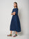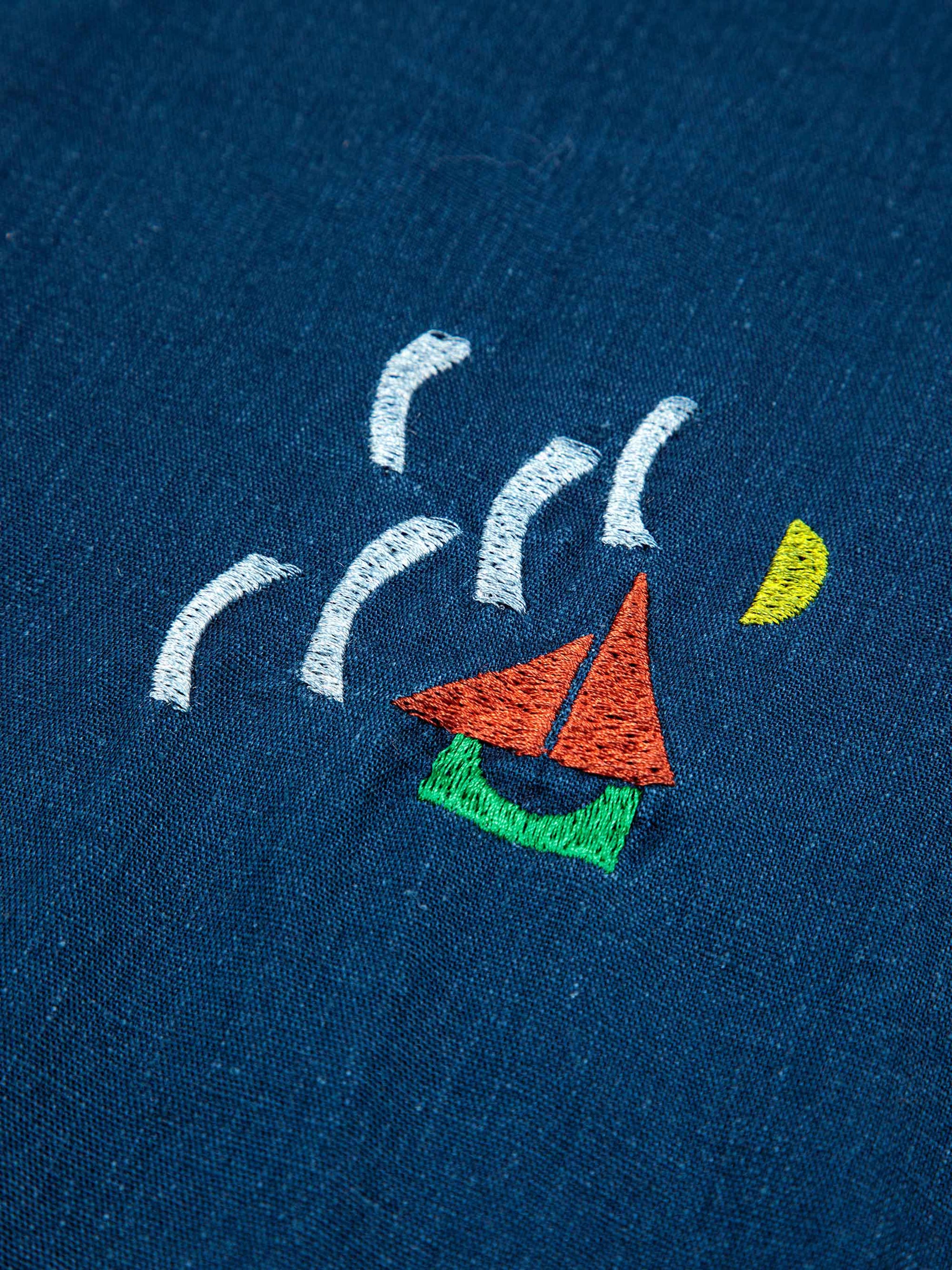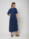 50% cotton 50% linen navy blue short sleeve dress. Designed with back zip fastening, side pocket, midi length and round neck. It has a loose fit. Made in Spain