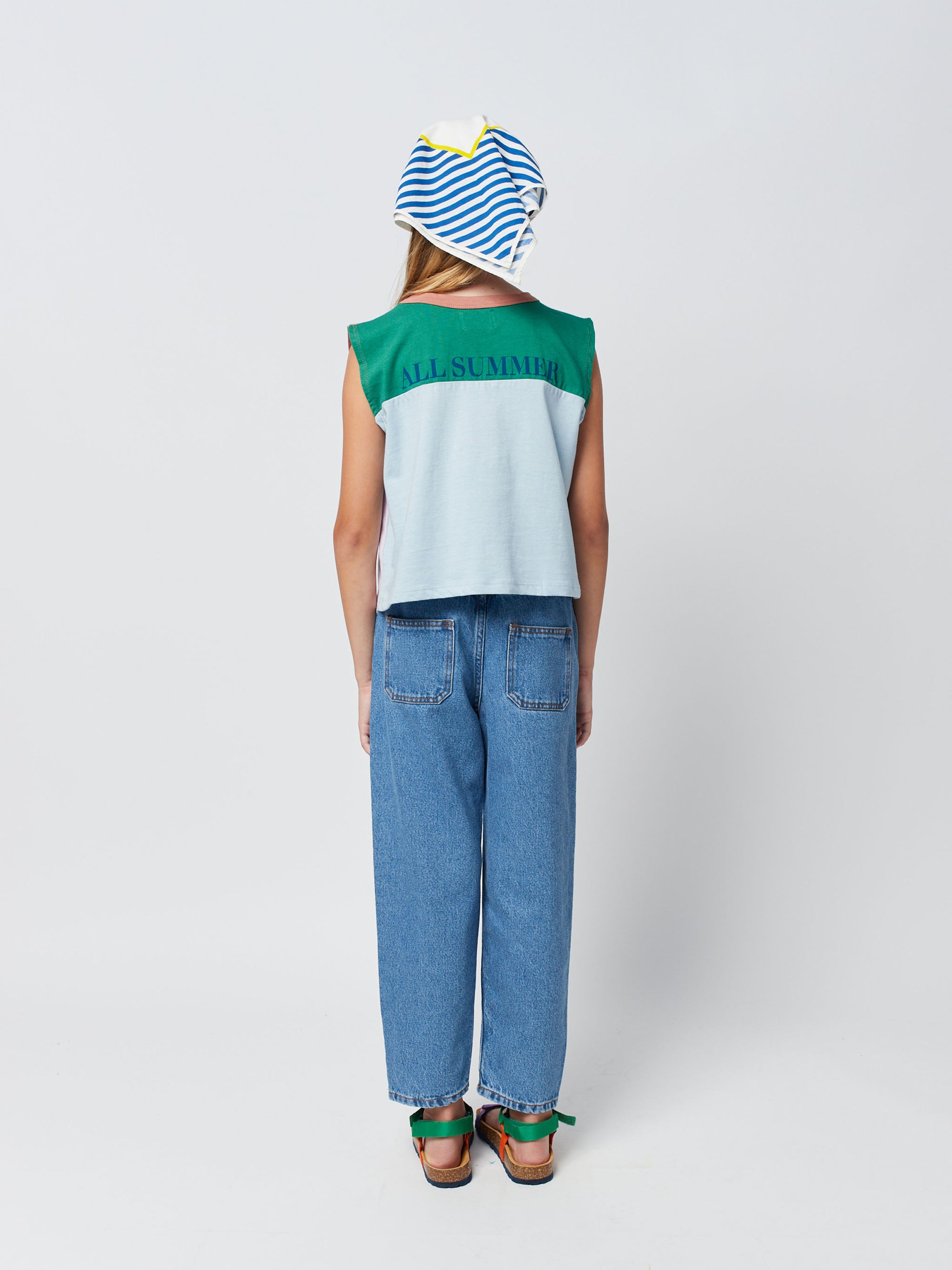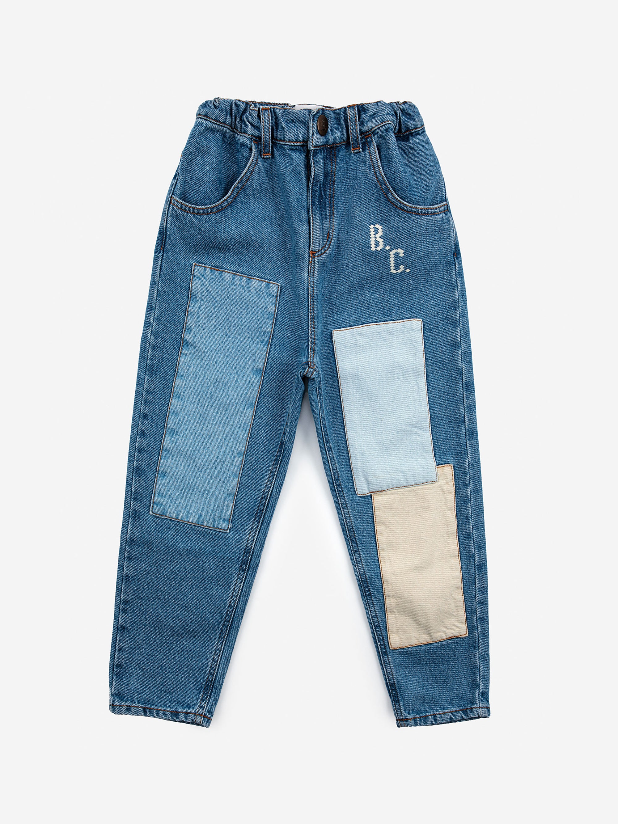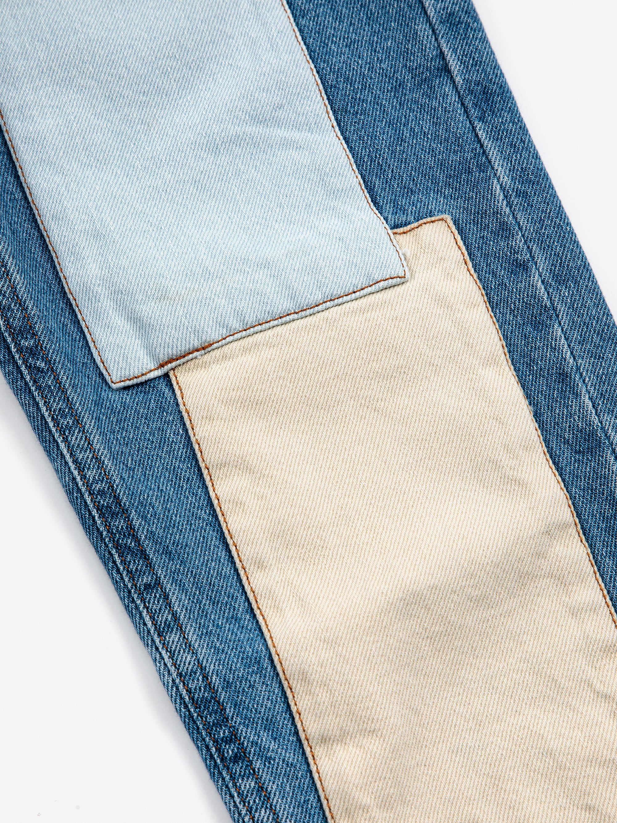 79% cotton 21% recycled cotton blue denim pants. Made in Spain