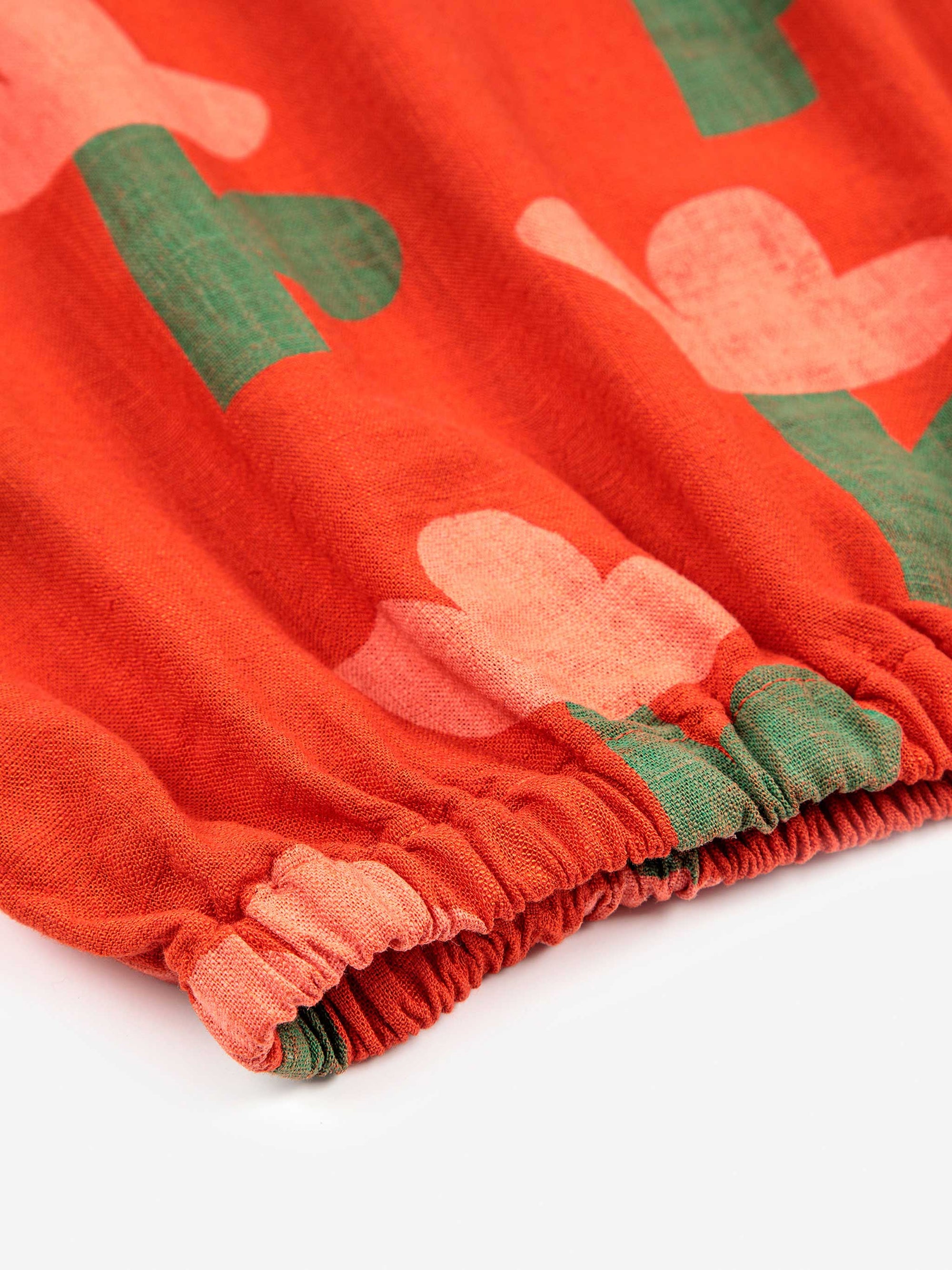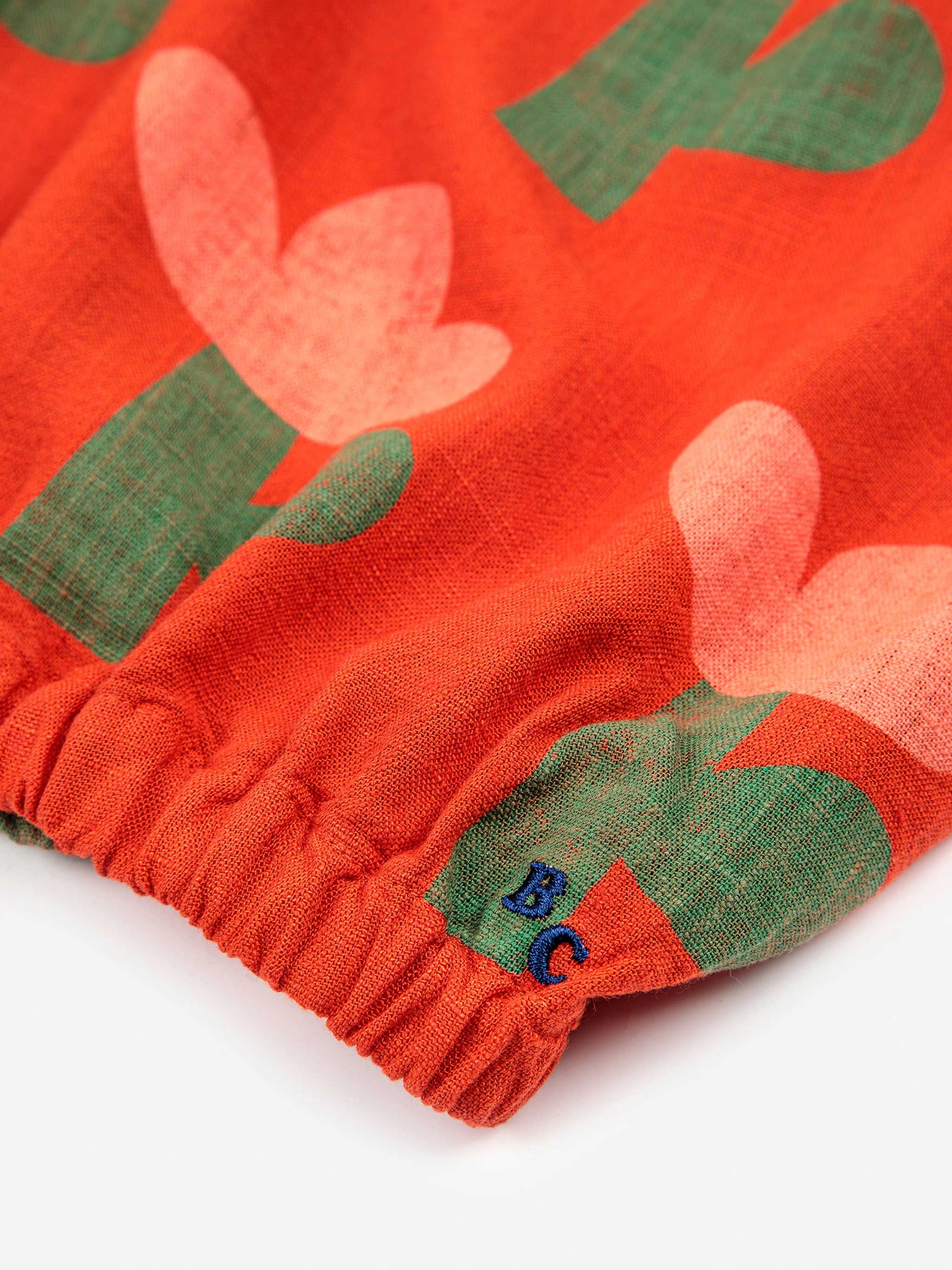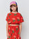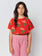 80% viscose 20% linen red short sleeve shirt. Designed with short sleeves, back button fastening, elasticated bottom, embroidery and round neck. Made in Spain