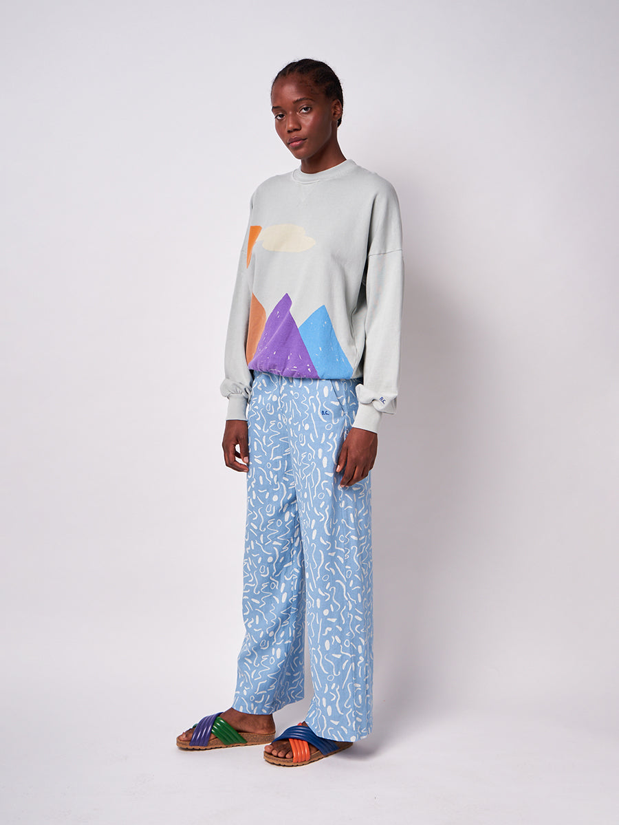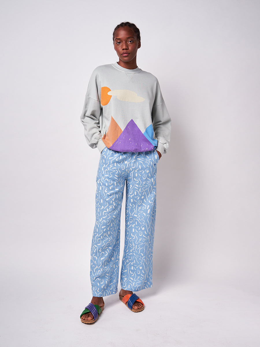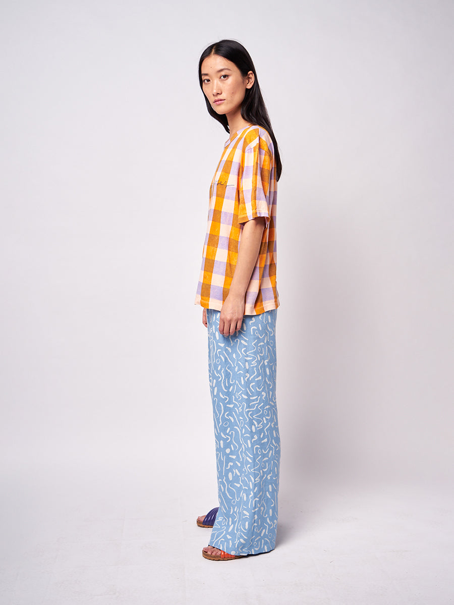 70% lyocell 30% linen. straight trousers. Designed with regular crotch, elasticated waistband, slash pocket, embroidery and long length. It has a wide leg fit. Made in Spain Measures: 103.00cm length. Woman is 168 cm tall and is wearing s size. Woman is 176 cm tall and is wearing s size. This item belongs to our SS22 adult collection, I’m a Poet. It celebrates poetry and its’ attitude of constant surprise and wonder. All things before the poet’s eyes have the impact of what is seen for the first time. To look for beauty and emotion in the ordinary, the beautiful, and the not-so-beautiful is as much an act of rebellion as a vital necessity.