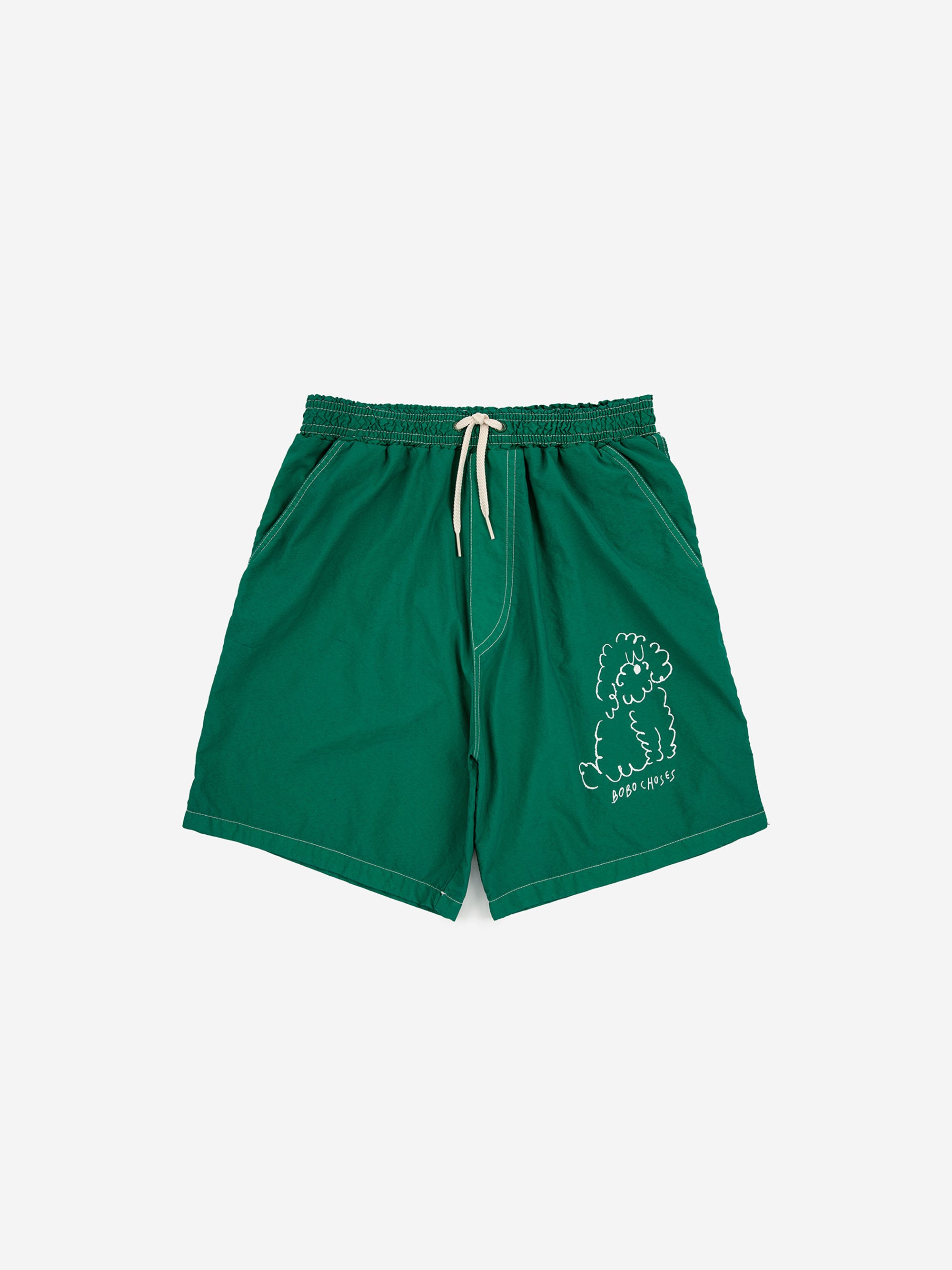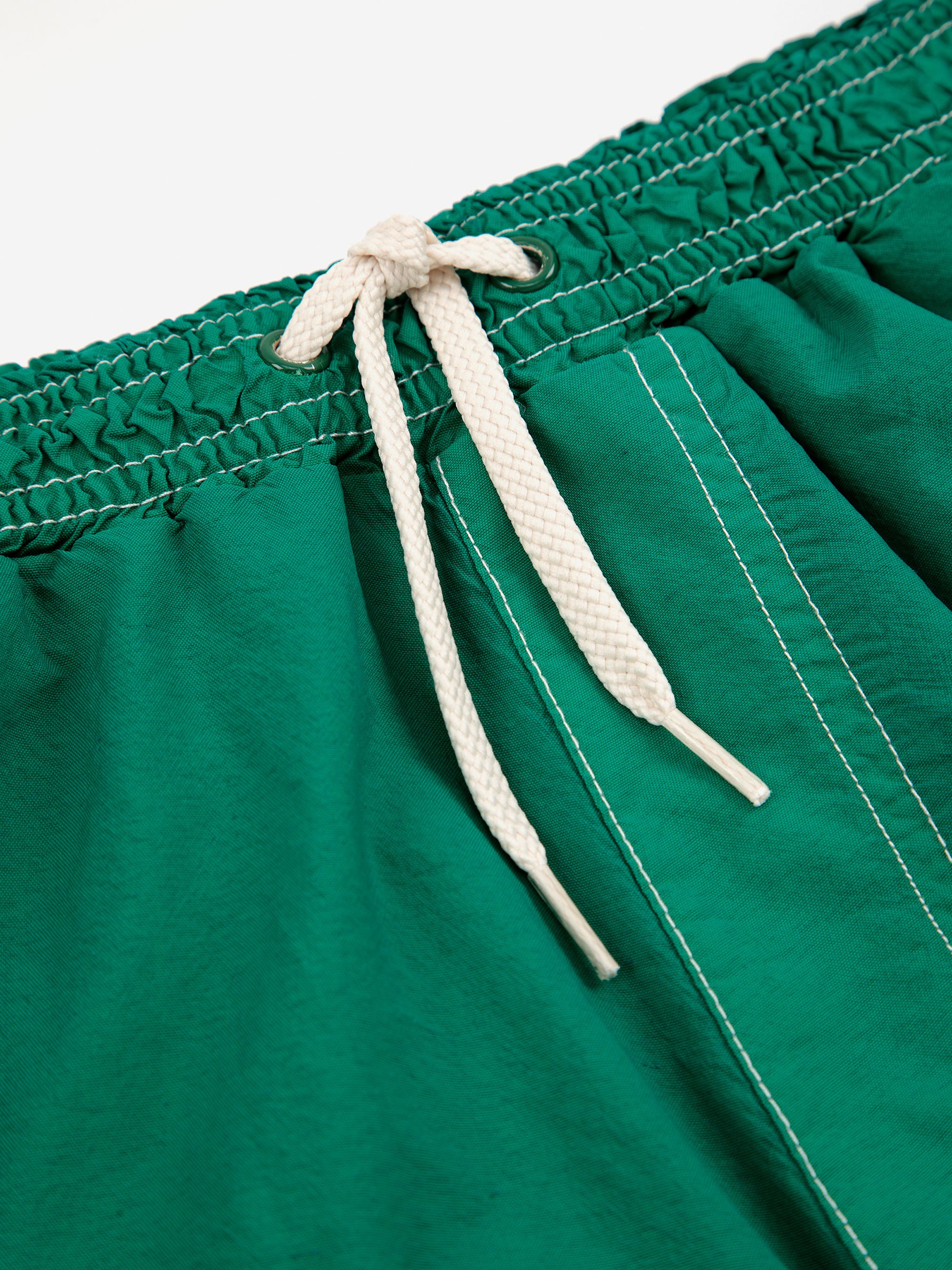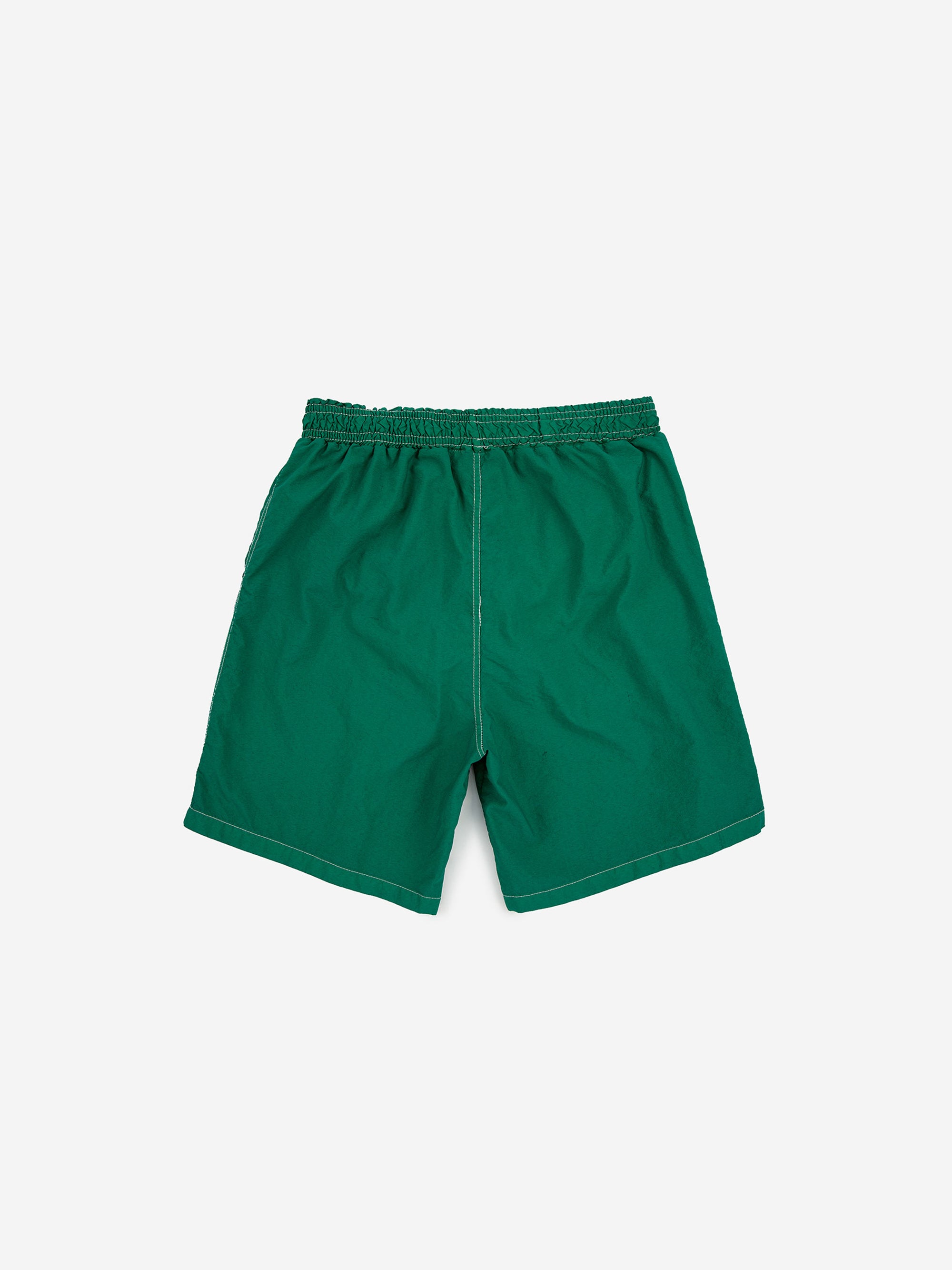95% polyester 5% elastane dark green swimsuit. Designed with elasticated waistband, side pocket, cord fastening and over knee length. It has a straight fit. Made in Spain