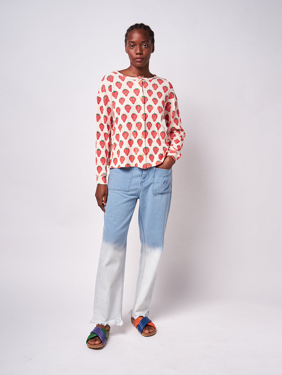 100% organic cotton. blouse shirt. Designed with long sleeves, dropped shoulder, front button fastening, round neck and structured fabric. It has a loose fit. Made in Spain Measures: 53.00cm length. Model is 176 cm tall and is wearing s size. This item belongs to our SS22 adult collection, I’m a Poet. It celebrates poetry and its’ attitude of constant surprise and wonder. All things before the poet’s eyes have the impact of what is seen for the first time. To look for beauty and emotion in the ordinary, the beautiful, and the not-so-beautiful is as much an act of rebellion as a vital necessity.