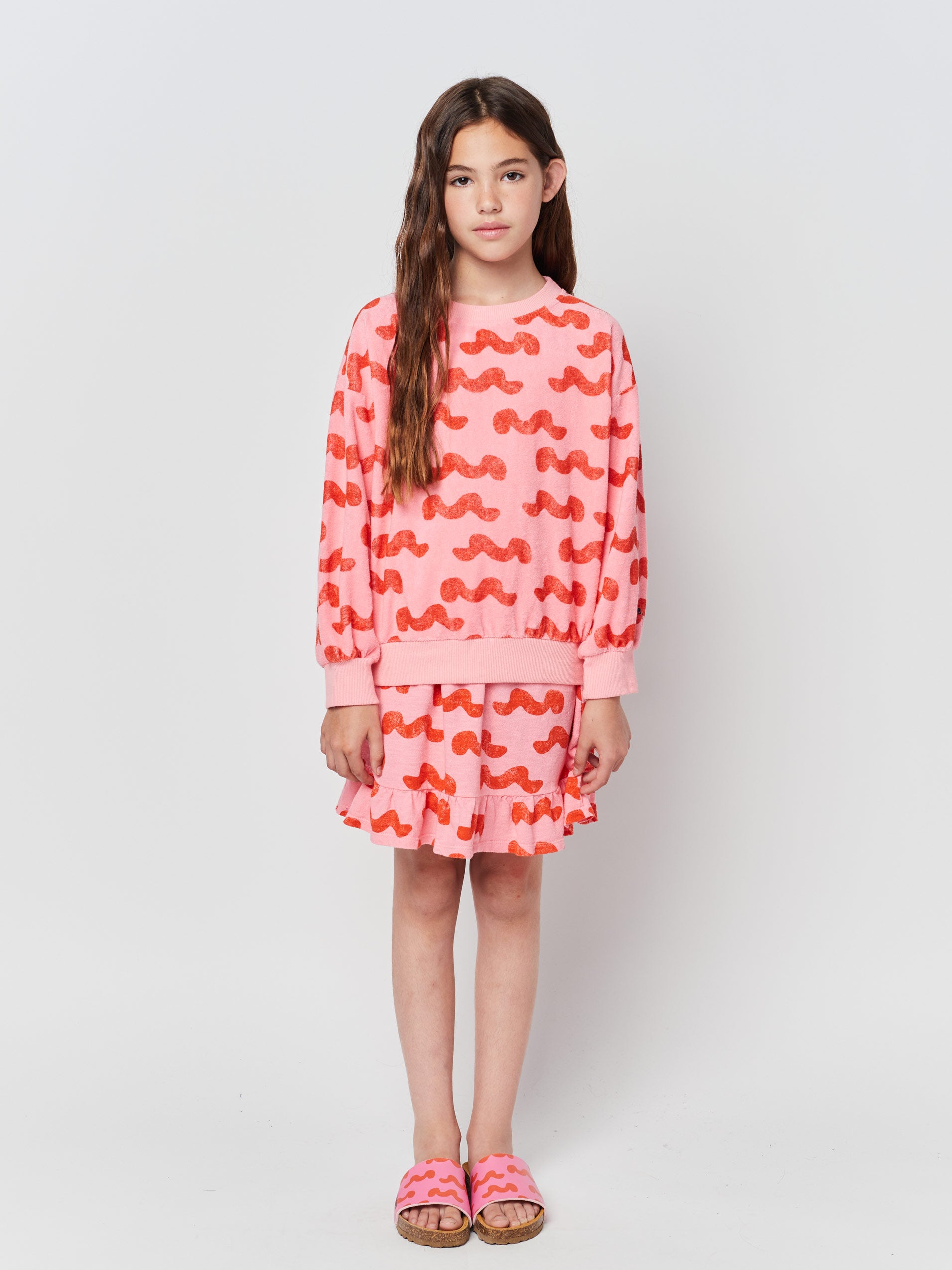 85% cotton 15% polyester pink round neck sweatshirt. Made in Spain