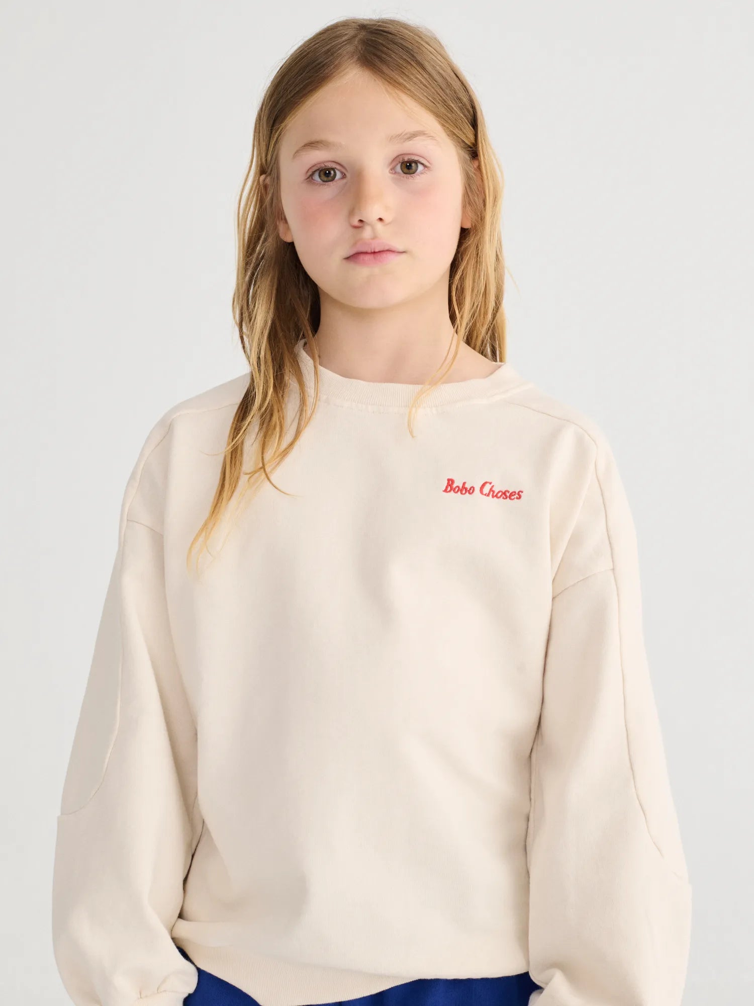 Sudadera de color blanco roto. Diseño con puños y bajo en canalé, bordado, corte holgado, cuello redondo y confección en forro polar. Producto fabricado en Portugal.