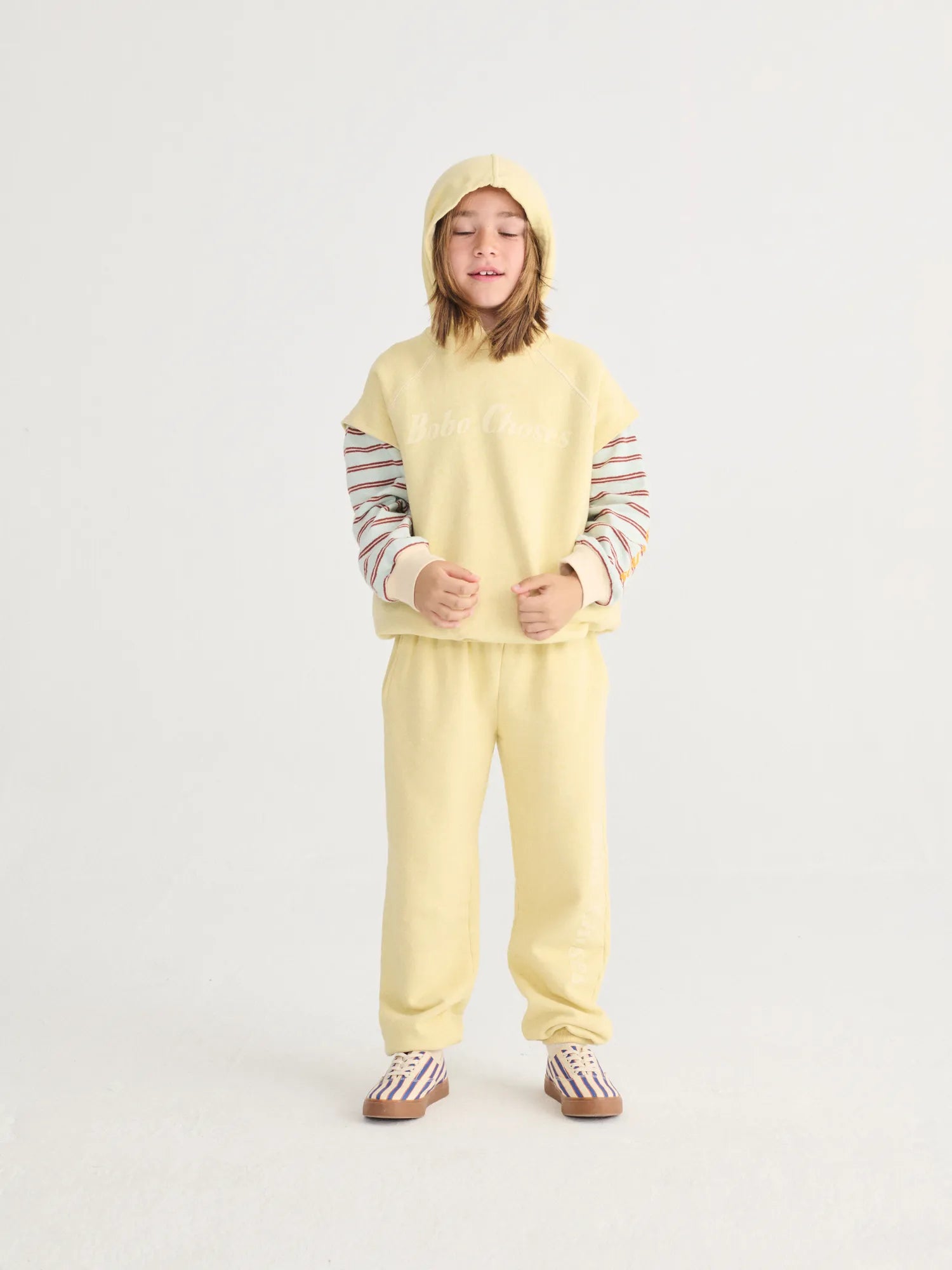 Sudadera de color amarillo. Diseño con capucha, sin mangas, puños y bajos en canalé, corte holgado, con confección en forro polar. Producto fabricado en España.