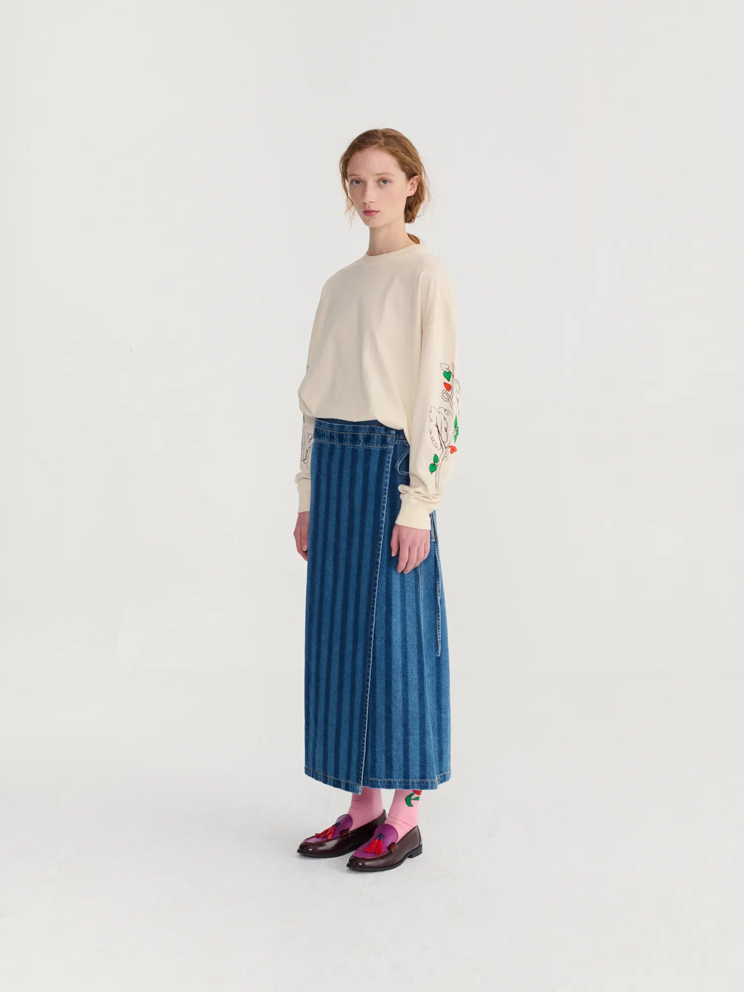 Falda cruzada vaquera a rayas
