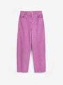 Pantalón de color morado. Diseño de corte relajado con tiro medio, con perneras rectas, largo cropped y confección en tejido ligero no elástico. Tallaje normal, elige la talla habitual. Producto fabricado en España.