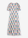 Vestido multicolor. Diseño de corte relajado, de largo midi, corte evasé, confección en tejido ligero no elástico. Tallaje normal, elige la talla habitual. Producto fabricado en España.