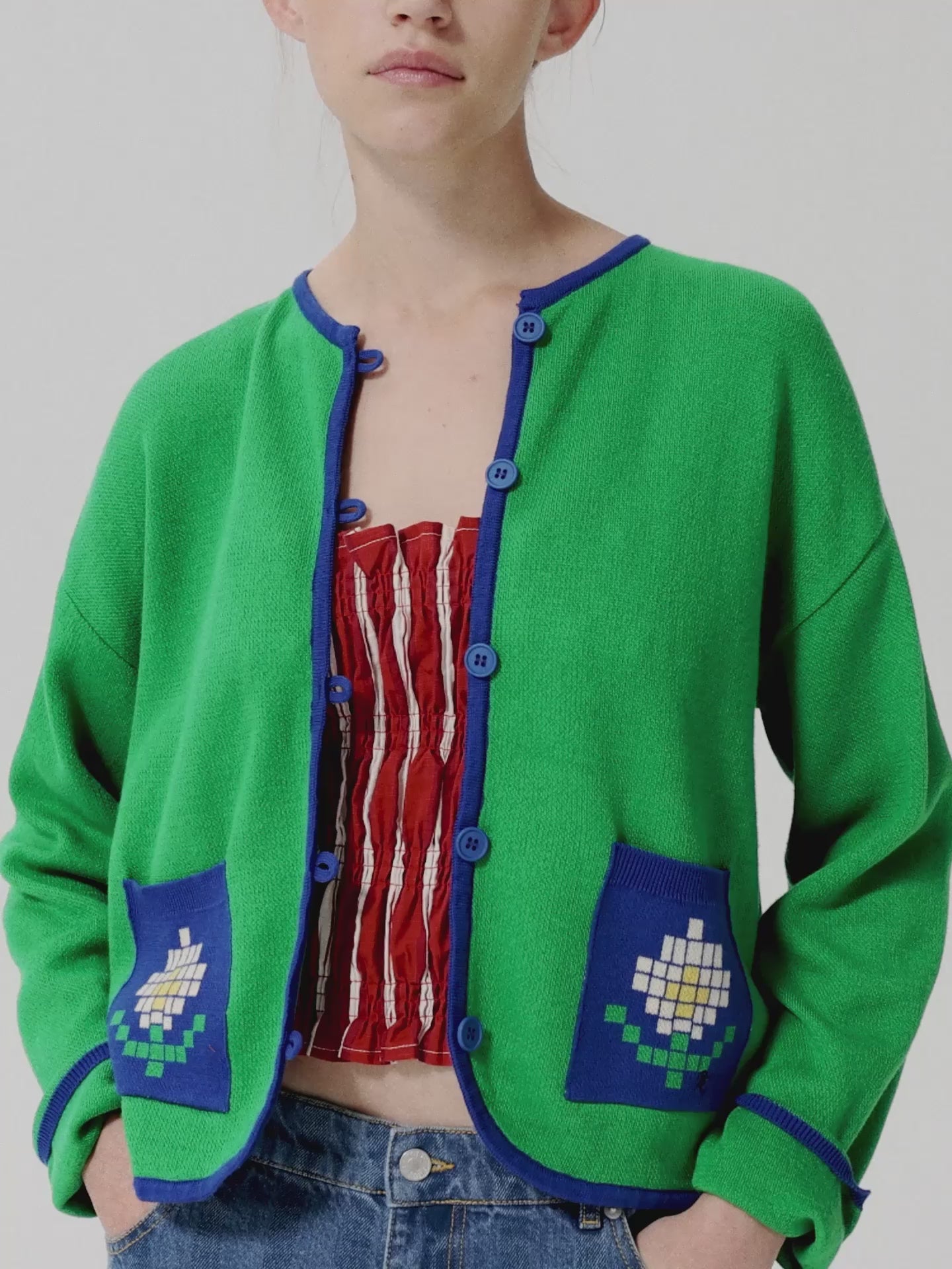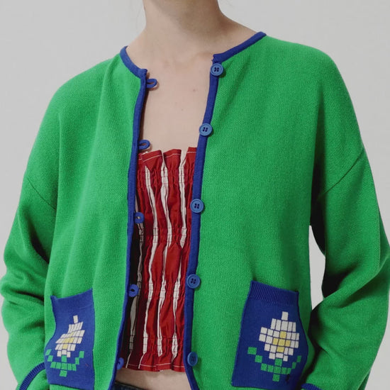 Cárdigan de algodón fino Pixel Daisy