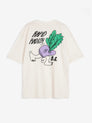 Camiseta color blanco roto. Diseño ligeramente holgado con costura de hombro caída y tejido elástico. Tallaje estándar, elige tu talla habitual. Hecha en España. Composición: 100% algodón orgánico.