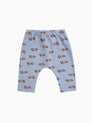 Pantalones azul claro. Diseñados con cintura elástica, ajuste holgado, longitud hasta el tobillo y forro polar interior. Hecho en España.