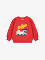Sudadera roja. Diseñada con mangas largas, hombro caído, cierre a presión en el hombro, puños de canalé, corte holgado, bajo acanalado, cuello redondo y forro polar interior. Hecha en España.
