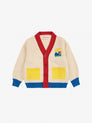 Cárdigan blanco roto. Diseñado con escote en V, mangas largas, hombros caídos, cierre frontal de botones, puños acanalados, bordado, tejido fino, ajuste holgado, bajo acanalado y bolsillo de parche. Hecho en España.