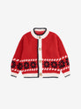 Cárdigan rojo. Diseñado con mangas largas, hombro caído, cierre frontal con botones, puños acanalados, bordado, intarsia, corte holgado, bajo acanalado y cuello redondo. Fabricado en España.