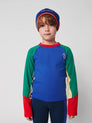 Camiseta multicolor. Diseñada con mangas largas, mangas raglán, corte ajustado y cuello redondo. Hecha en China.