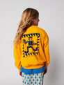 Sudadera amarilla. Diseñada con mangas largas, puños de canalé, bordado, corte holgado, bajo acanalado y cuello redondo. Hecha en España.
