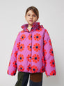 Anorak morado. Diseñado con mangas largas, cierre frontal a presión, bajo elástico, puños elásticos, acolchado pesado, forro reciclado, cuello alto, bolsillo de costura y corte holgado. Hecho en China.