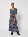 Vestido azul marino. Diseñado con longitud midi, corte acampanado / evasé y tela no elástica. Se ajusta a la talla, toma tu talla normal. Hecho en España.