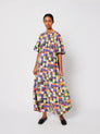 Vestido multicolor. Diseñado con longitud midi, corte acampanado / evasé, tela no elástica, tejido ligero y fluido. Ajusta a la talla, toma tu talla normal. Hecho en España.