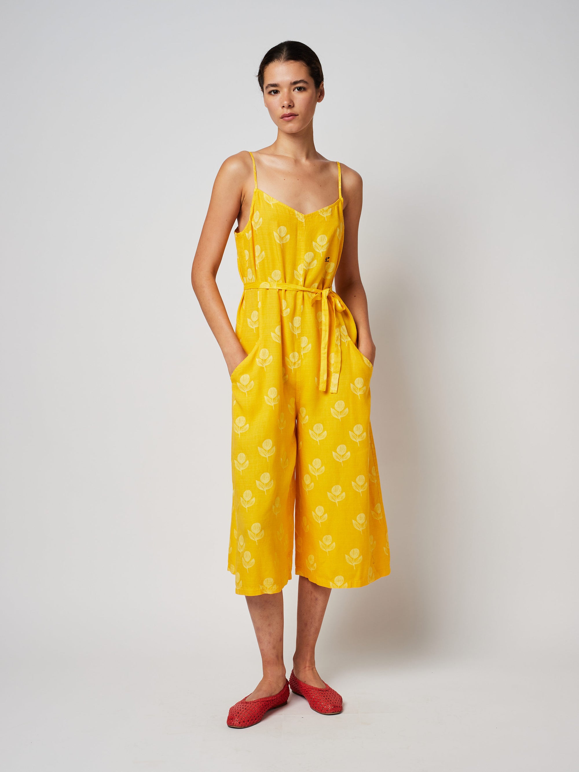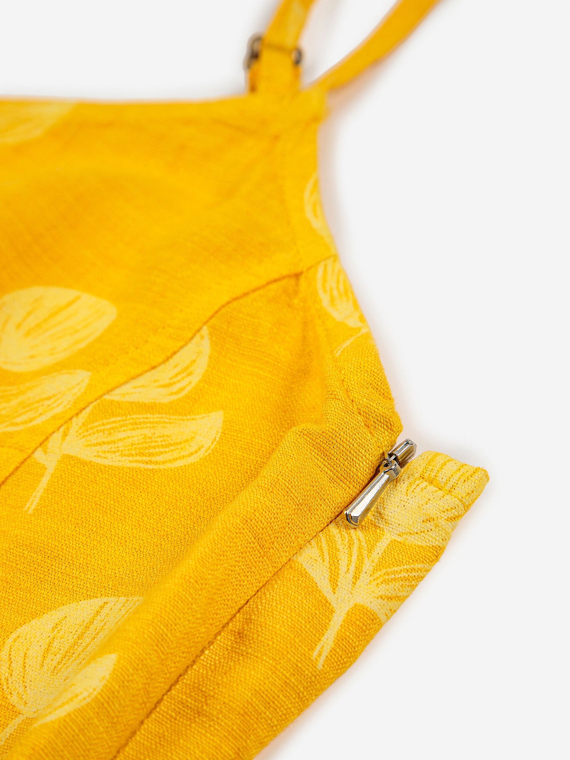 Mono de tirantes amarillo 70 % lyocell, 30 % lino. Fabricado en España
