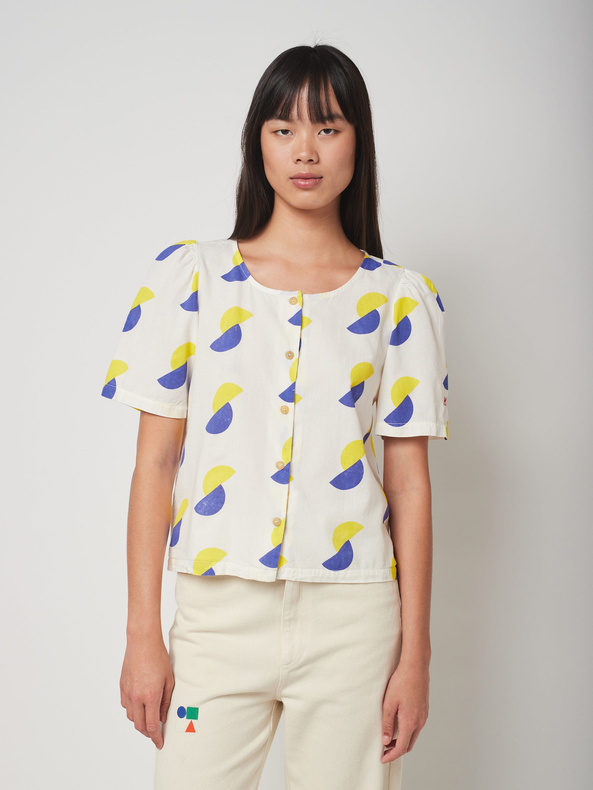 Camisa náutica con botones y manga abullonada