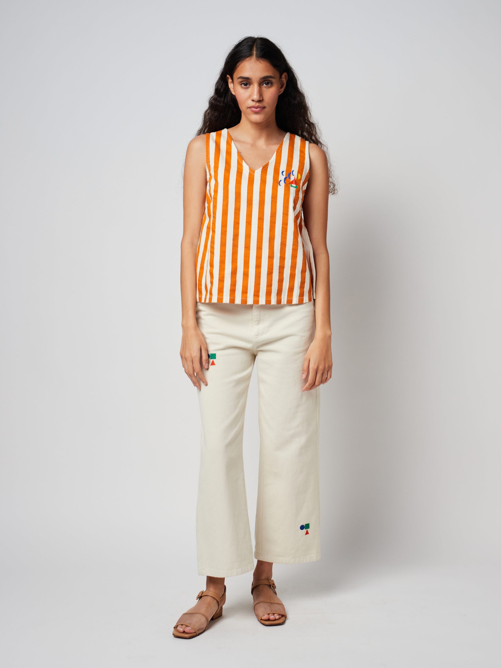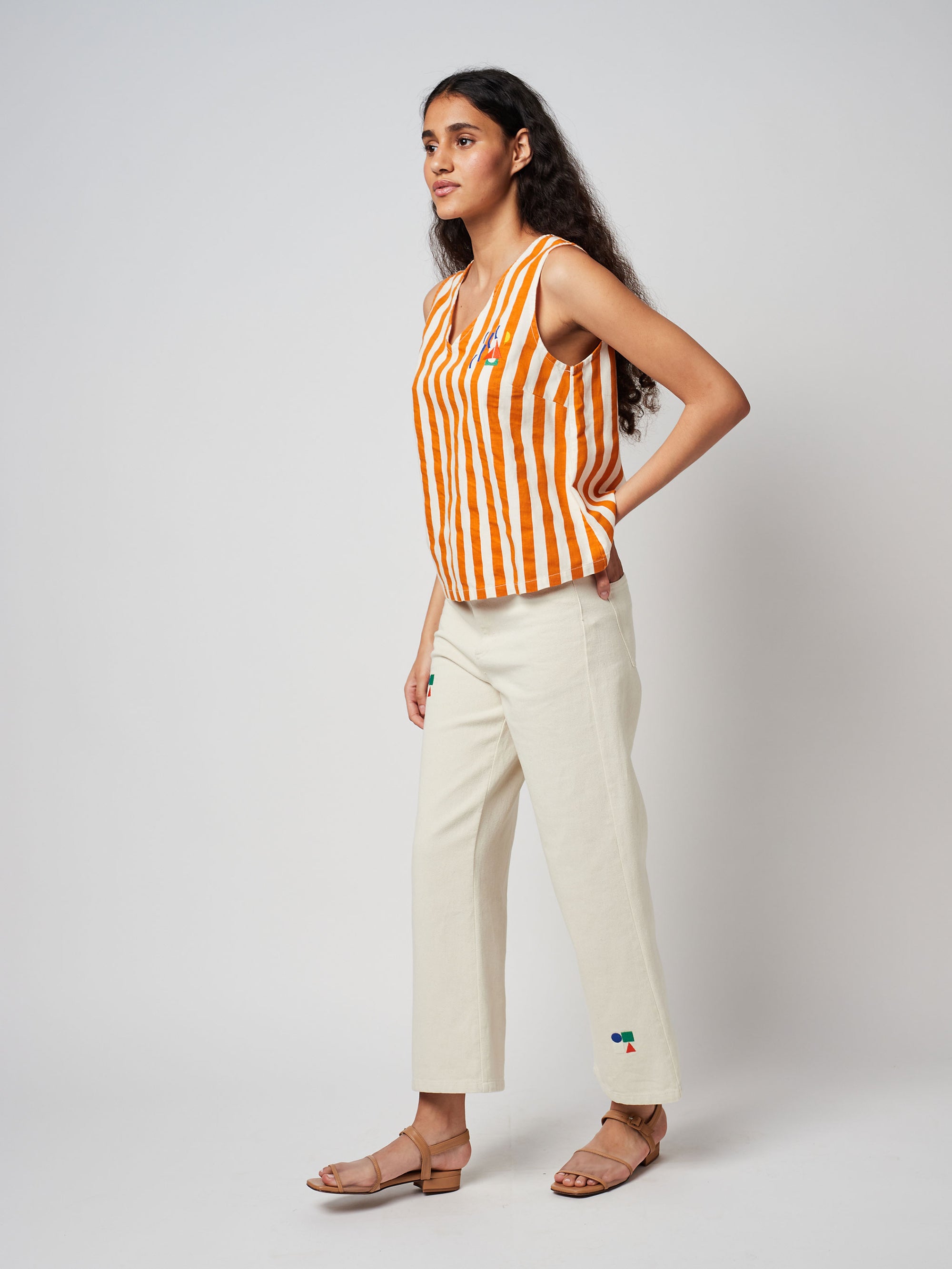Top de tirantes naranja 50 % algodón, 25 % lyocell, 25 % lino. Fabricado en España