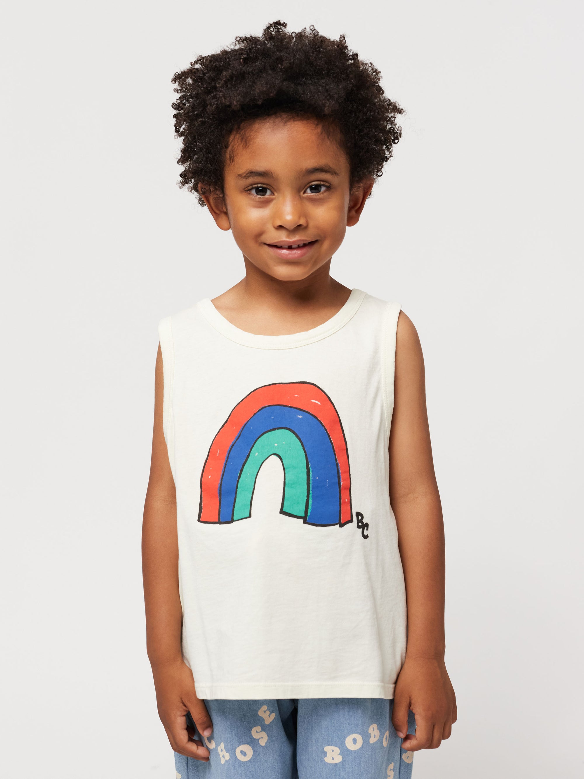 T-shirt blanc cassé 100% coton BCI. Conçu avec une coupe ample sans manches et un large col rond. Fabriqué au Portugal.