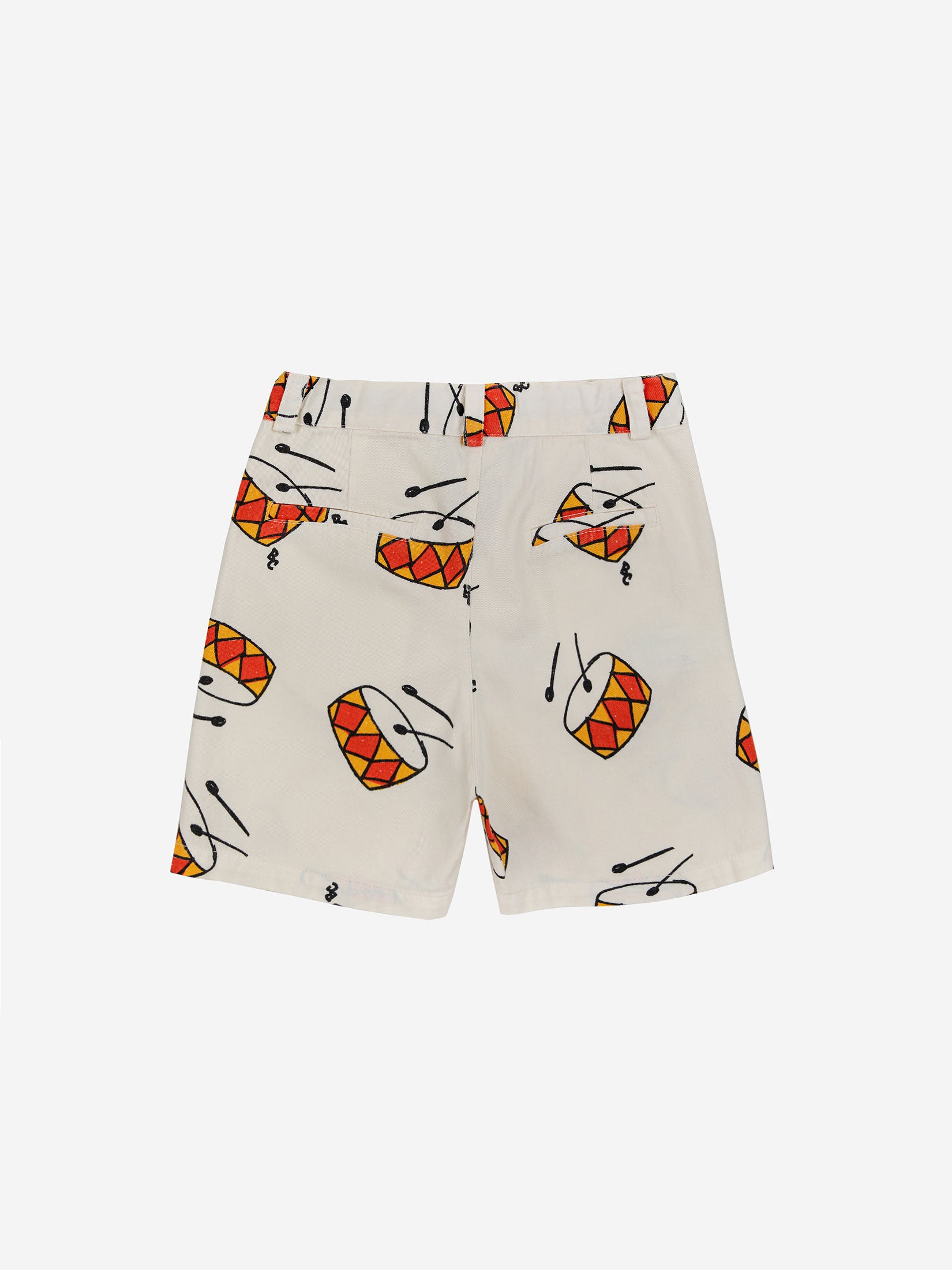 Short blanc cassé 100% coton BCI. Conçu avec entrejambe régulier, taille réglable, fermeture à bouton-pression sur le devant, fermeture éclair, poche latérale, coupe ample, longueur standard et au-dessus du genou. Fabriqué en Espagne.