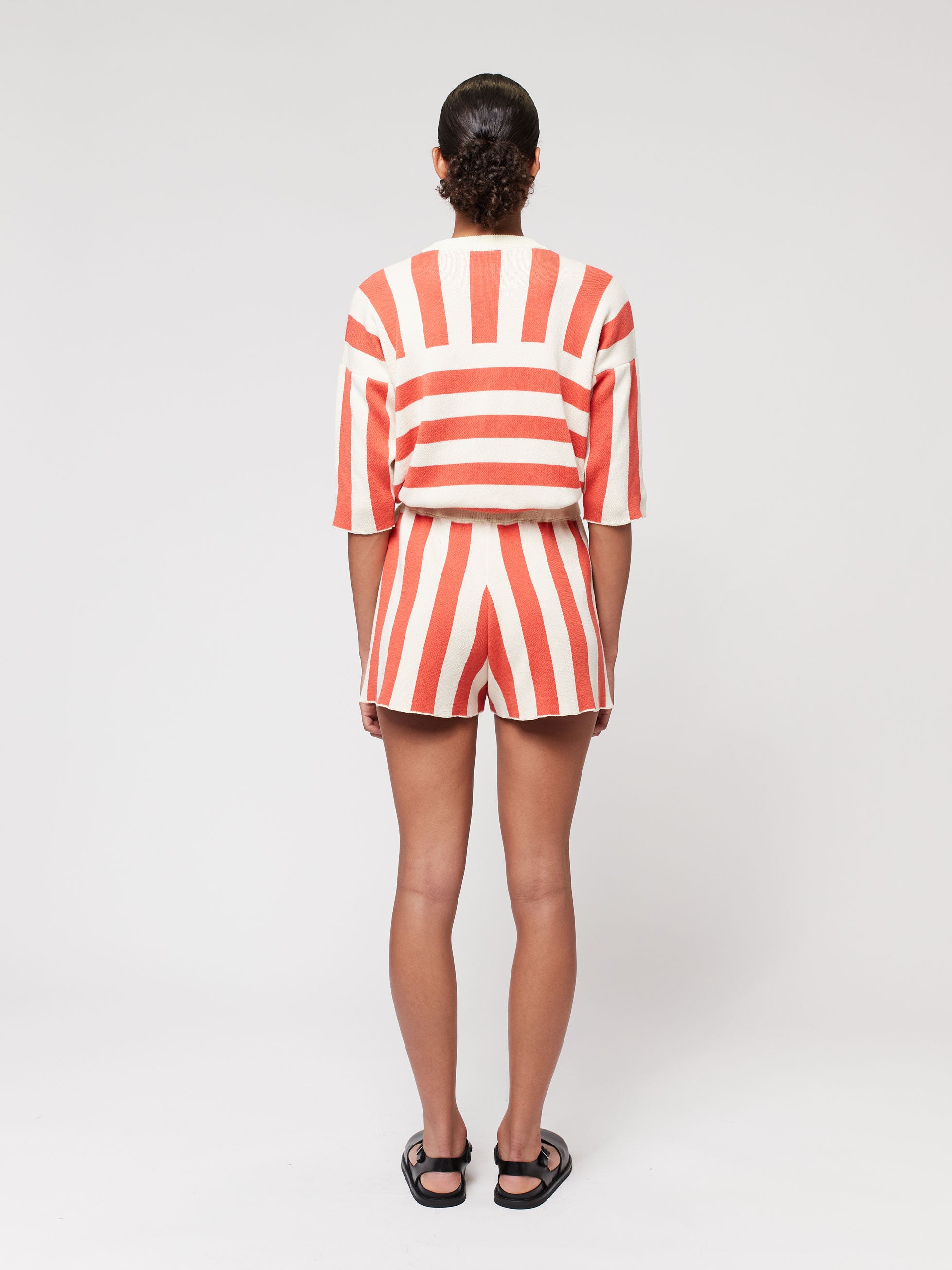 Striped short sleeve knitted sweater
