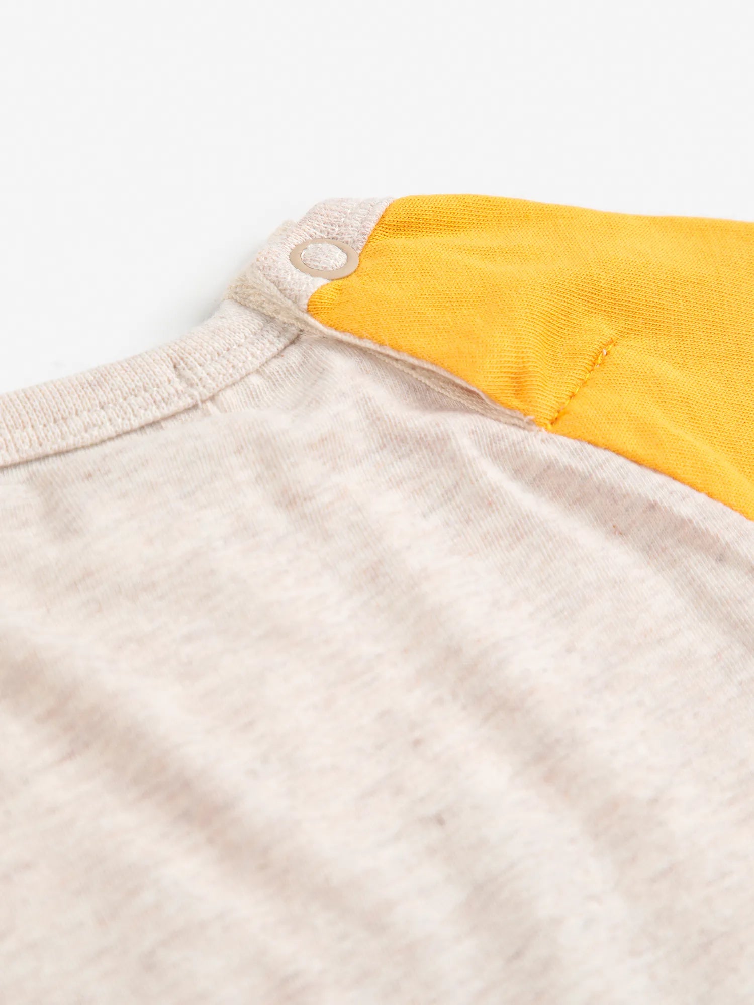 T-shirt blanc. Ce vêtement est doté de manches longues et raglan, d'une fermeture par bouton-pression à l'épaule, d'une coupe ample et d'un col rond. Fabriqué au Portugal.