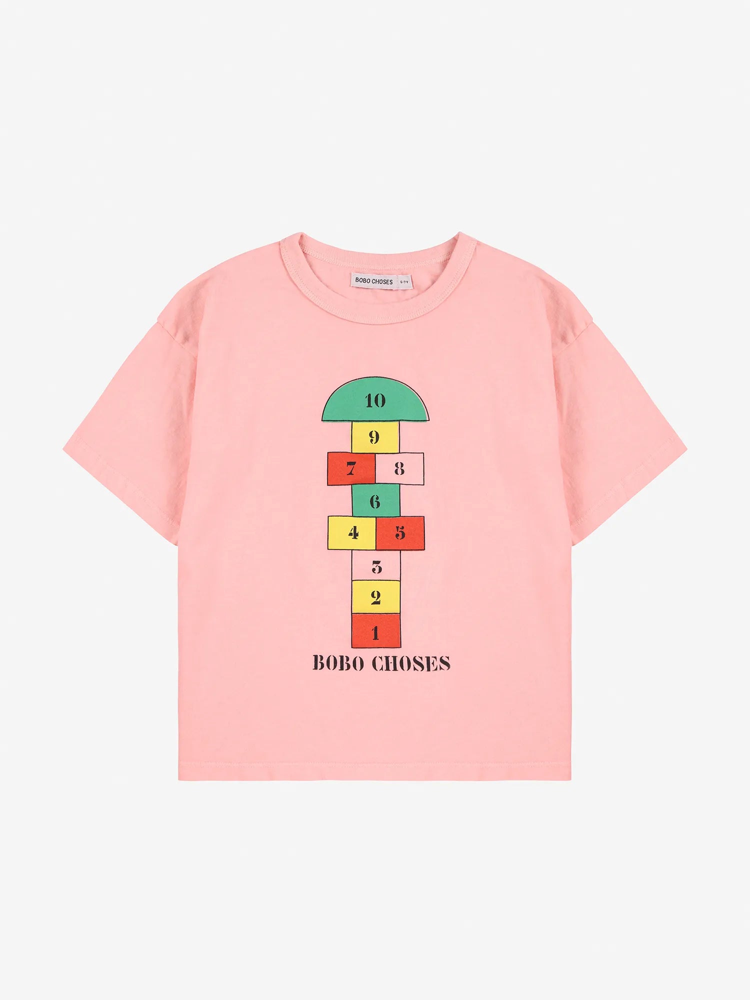 T-shirt rose. Ce vêtement est doté de manches courtes, d'une coupe ample et d'un col rond. Fabriqué en Espagne.