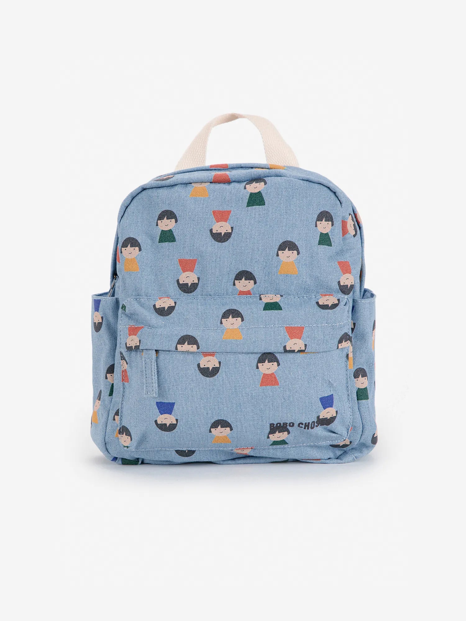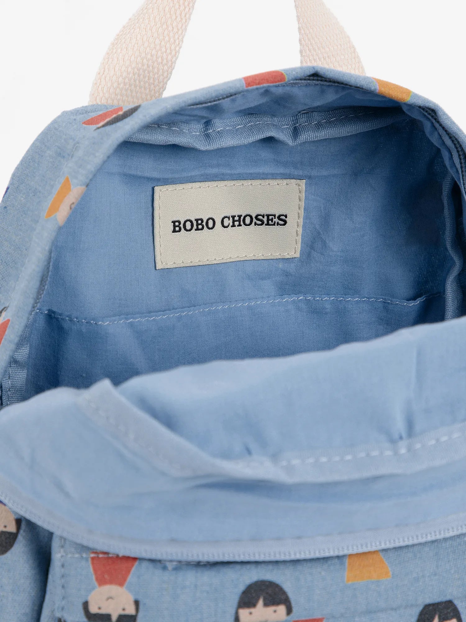 Sac à dos bleu clair. Fabriqué en Chine.