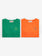 Lots de t-shirts vert et rouge composés de 45 % de modal, 43 % de coton biologique et 12 % d'élasthanne. Ces vêtements sont dotés de manches courtes, d'une coupe ajustée et d'un col rond.