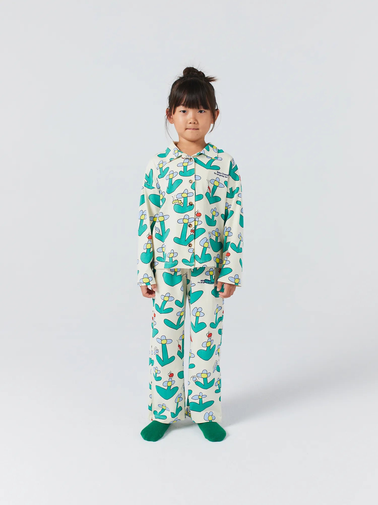 Doux, intemporel et tellement confortable ! Cet ensemble d'intérieur blanc cassé, fabriqué en 100 % coton biologique, comprend une chemise travaillée à boutons, manches longues et broderies ainsi qu'un pantalon décontracté et respirant.