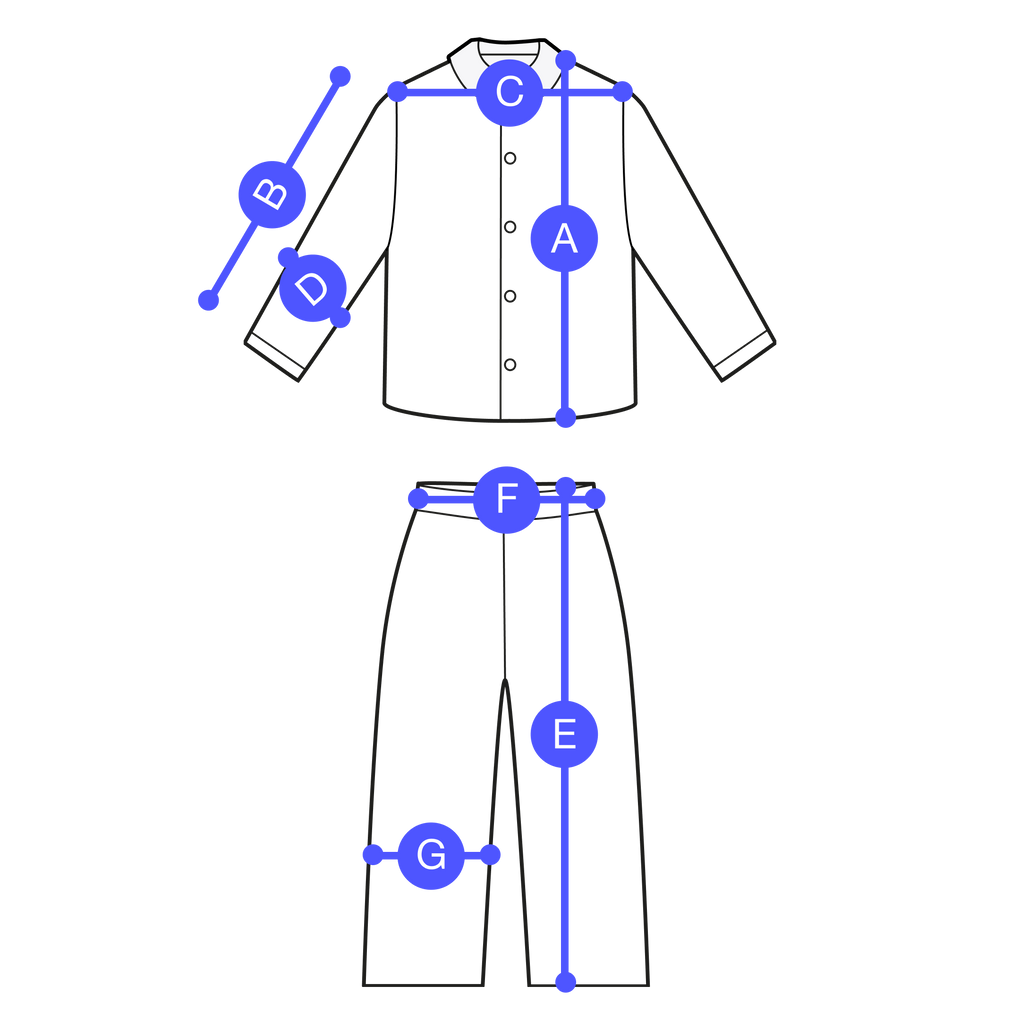 Les mesures sont approximatives et peuvent légèrement varier en raison du processus de production. Les vêtements sont mesurés à plat.