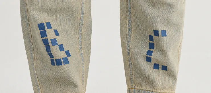 Pickles The Dog 전체 무늬 라이트 데님 팬츠