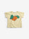 노란색 티셔츠입니다. 반소매, 드롭 숄더, 어깨 스냅 여밈, 루즈 핏, 라운드 넥으로 디자인 되었습니다. 제조국 스페인.
