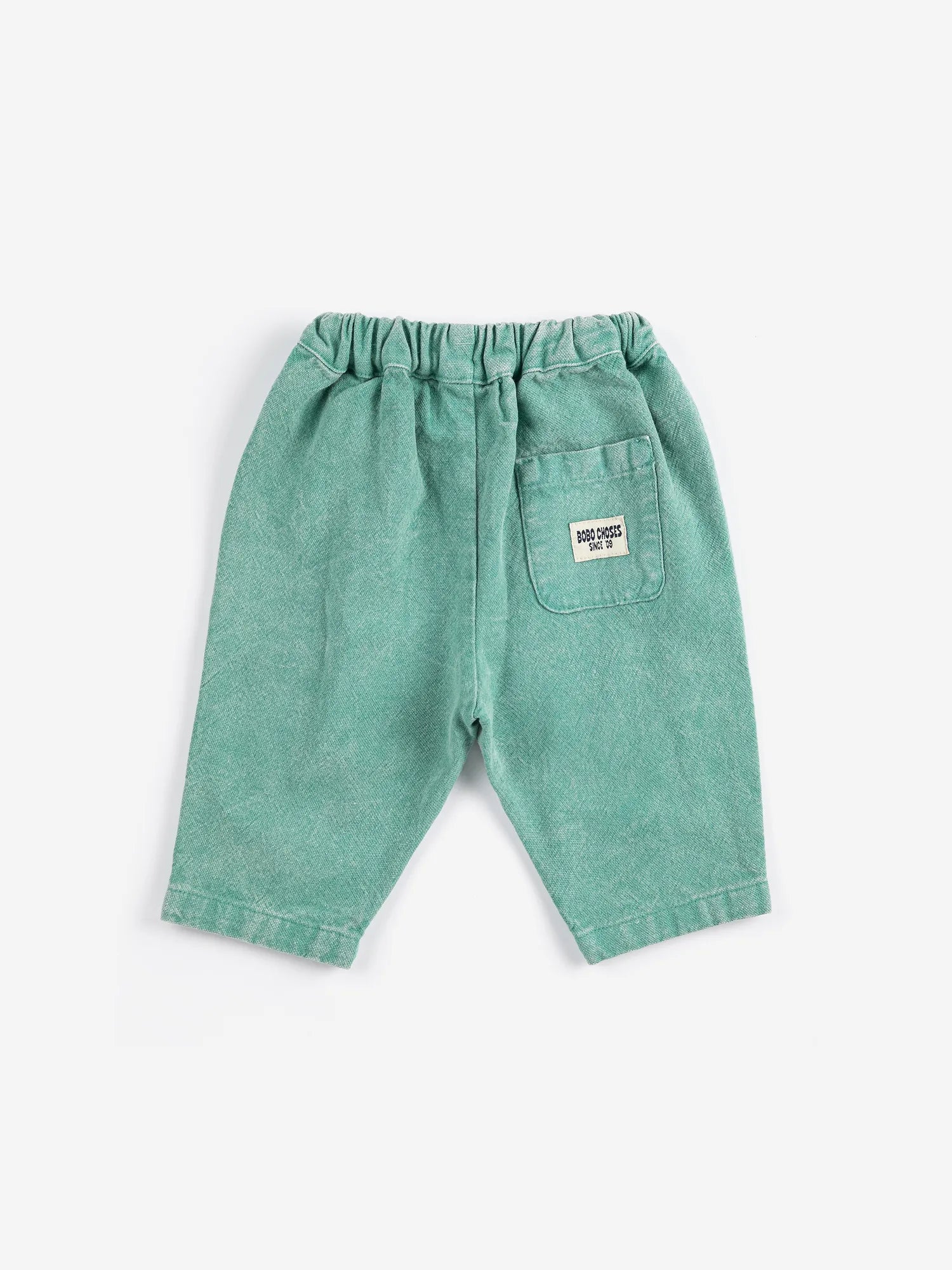 초록색 바지입니다. 신축성 있는 허리 밴드, 패치, 무릎 패치, 배기 핏, 조절 가능한 끈, 발목 기장과 패치 포켓으로 디자인 되었습니다. 제조국 스페인.