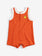 주황색 플레이슈트입니다. 민소매, 앞면 스냅 여밈, 가랑이 스냅 여밈, 자수, 루즈 핏, 무릎 위 기장, 라운드 넥으로 디자인 되었습니다. 제조국 스페인.