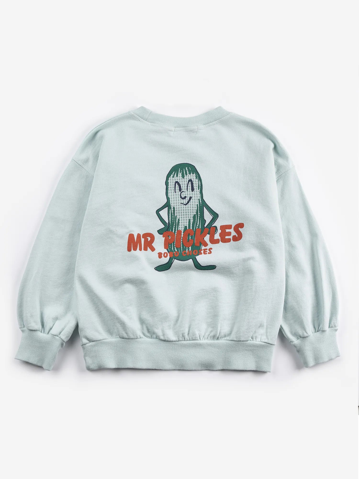 하늘색 스웨트셔츠입니다. 리브드 마감 소맷단, 자수, 루즈 핏, 리브드 마감 밑단, 라운드 넥, 플리스로 디자인 되었습니다. 제조국 포르투갈.