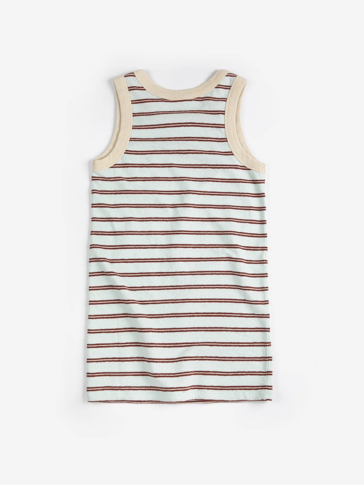 하늘색 원피스입니다. 자수, 스트레이트 핏, 무릎 위 길이, 넓은 라운드 넥으로 디자인 되었습니다. 제조국 포르투갈.