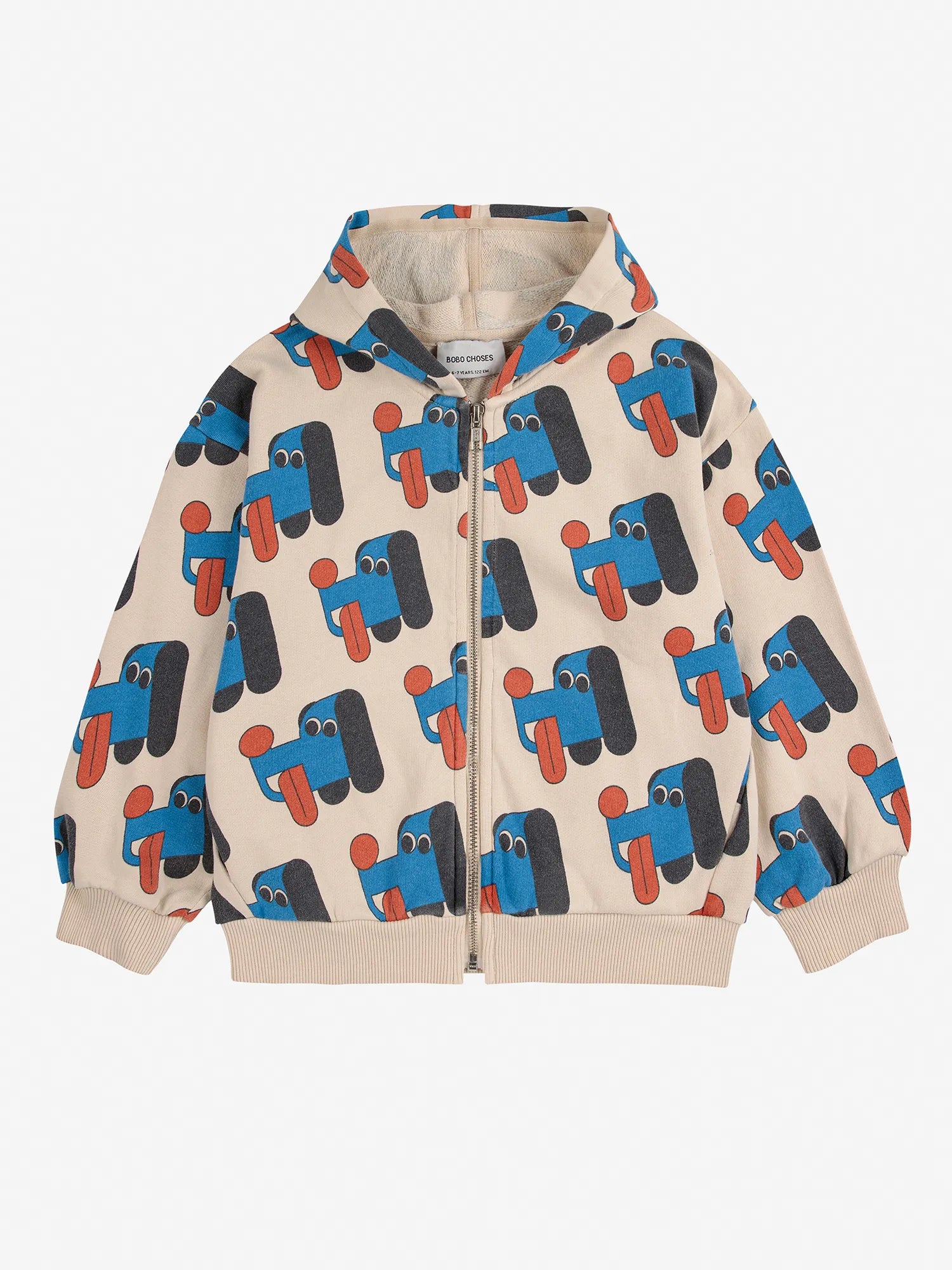 오프화이트 색상의 스웨트 셔츠입니다. 후드, 긴소매, 지퍼, 리브드 마감 소맷단, 루즈 핏, 리브드 마감 밑단, 솔기 포켓, 내부 기모 처리로 디자인 되었습니다. 제조국 포르투갈.