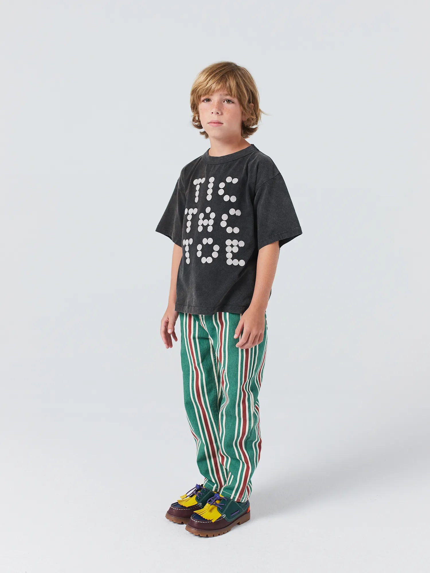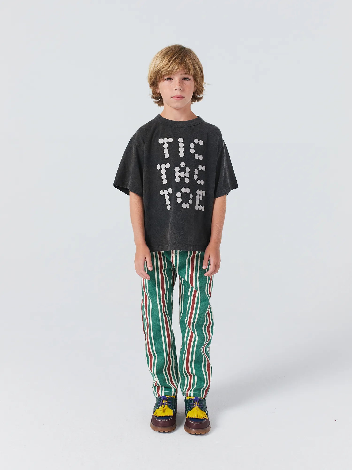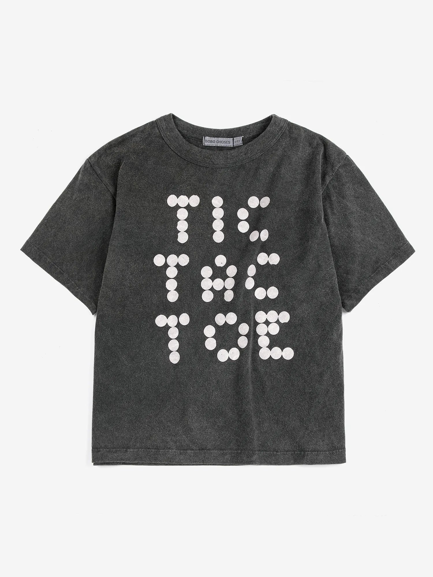 유기농 면 100% 짙은 회색 티셔츠입니다. 반소매, 루즈 핏, 라운드 넥으로 디자인 되었습니다. 제조국 스페인.