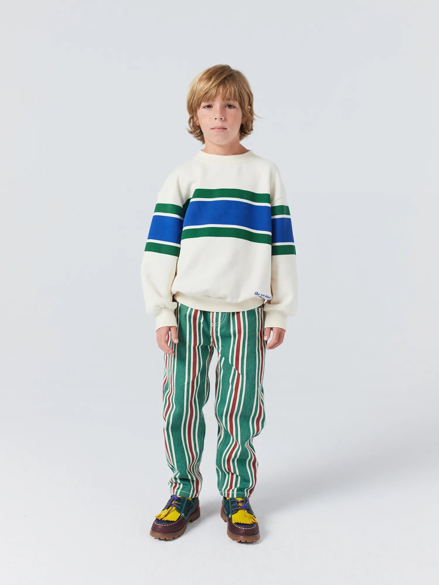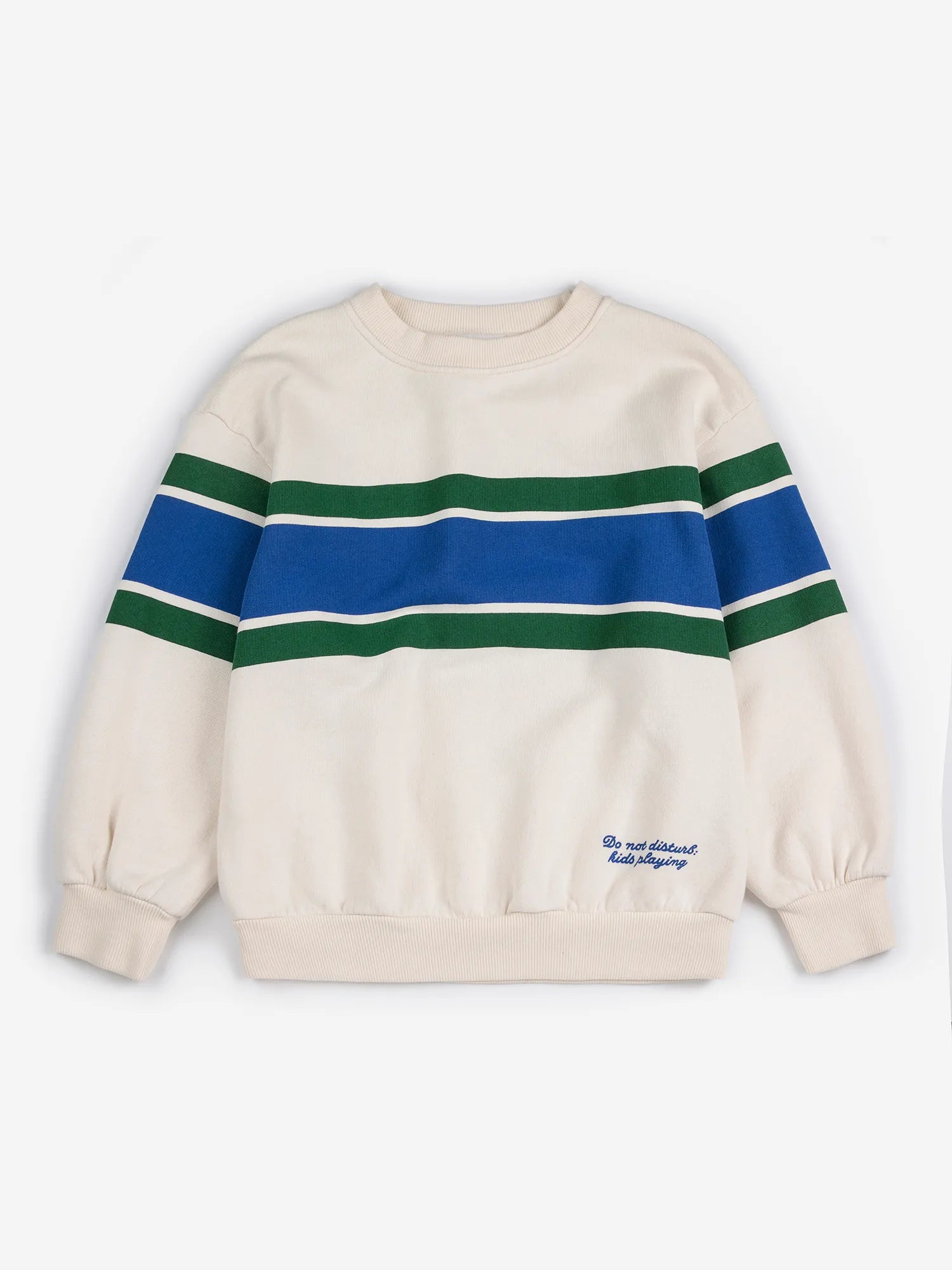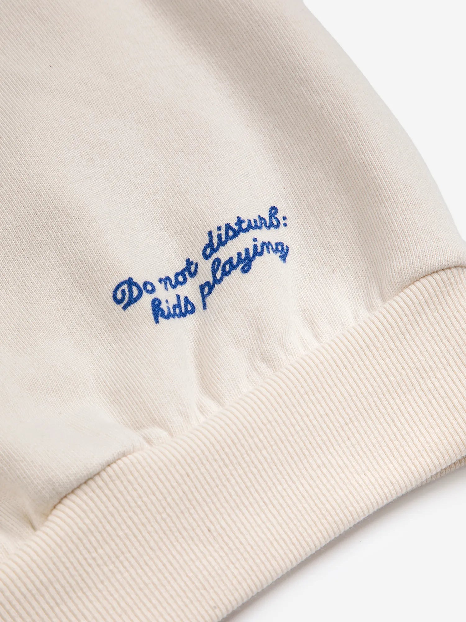 유기농 면 100%의 오프화이트 색 스웨트셔츠입니다. 긴소매, 리브드 마감 소맷단, 루즈 핏, 리브드 마감 밑단, 라운드 넥, 내부 기모 플리스로 디자인 되었습니다. 제조국 스페인.