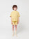 움직임마다 햇살이 찬란하게 빛납니다! 유기농 면 100%로 제작된 반소매 자수 티셔츠와 편안하고 통기성 좋은 반바지로 구성된 노란색 실내복 세트입니다. 제조국 중국.