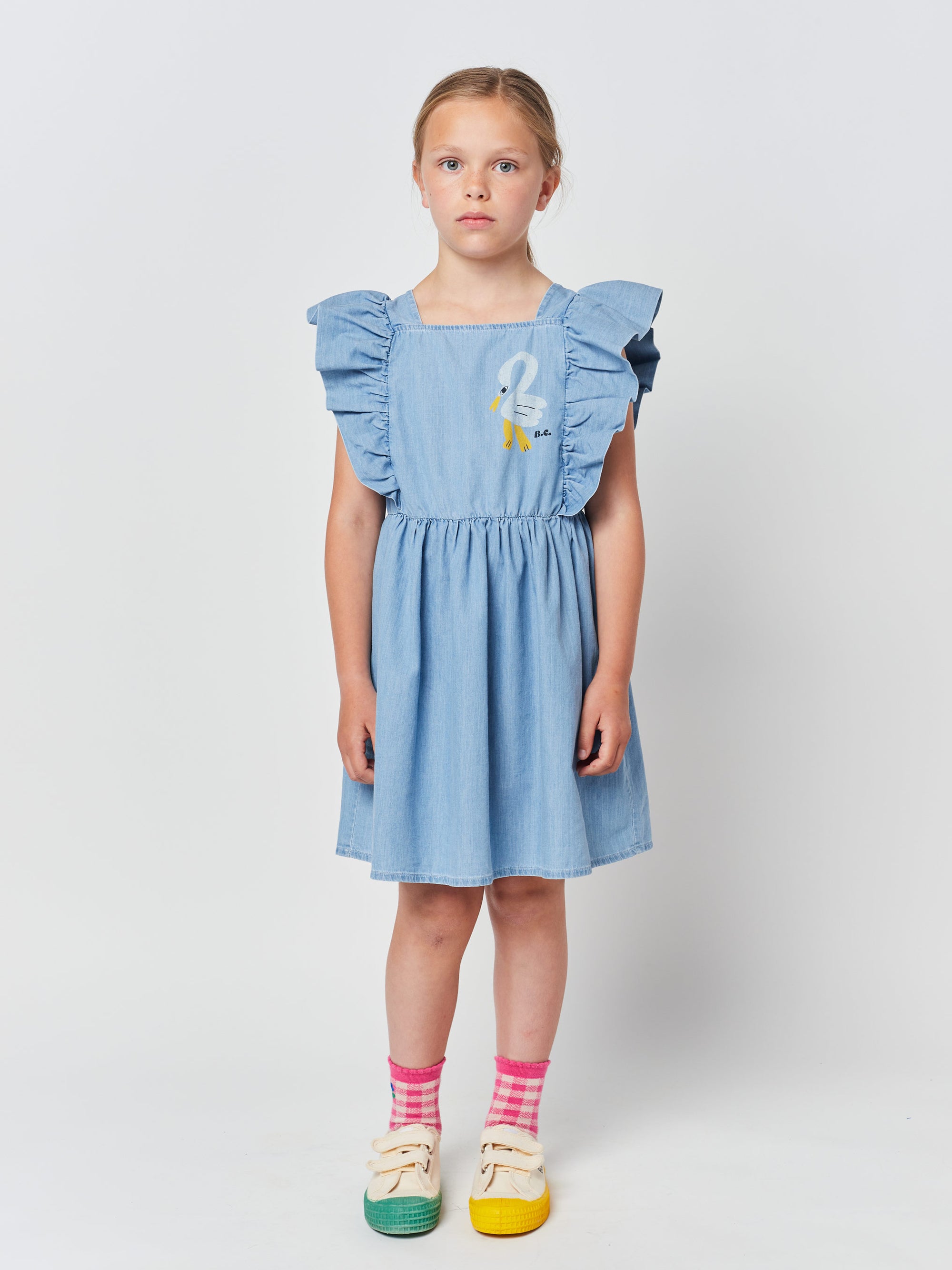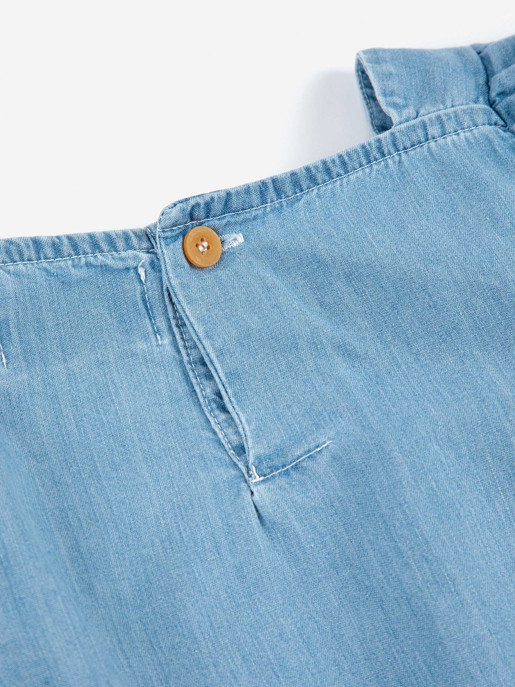 100% cotton light blue sleeveless dress. Made in Spain