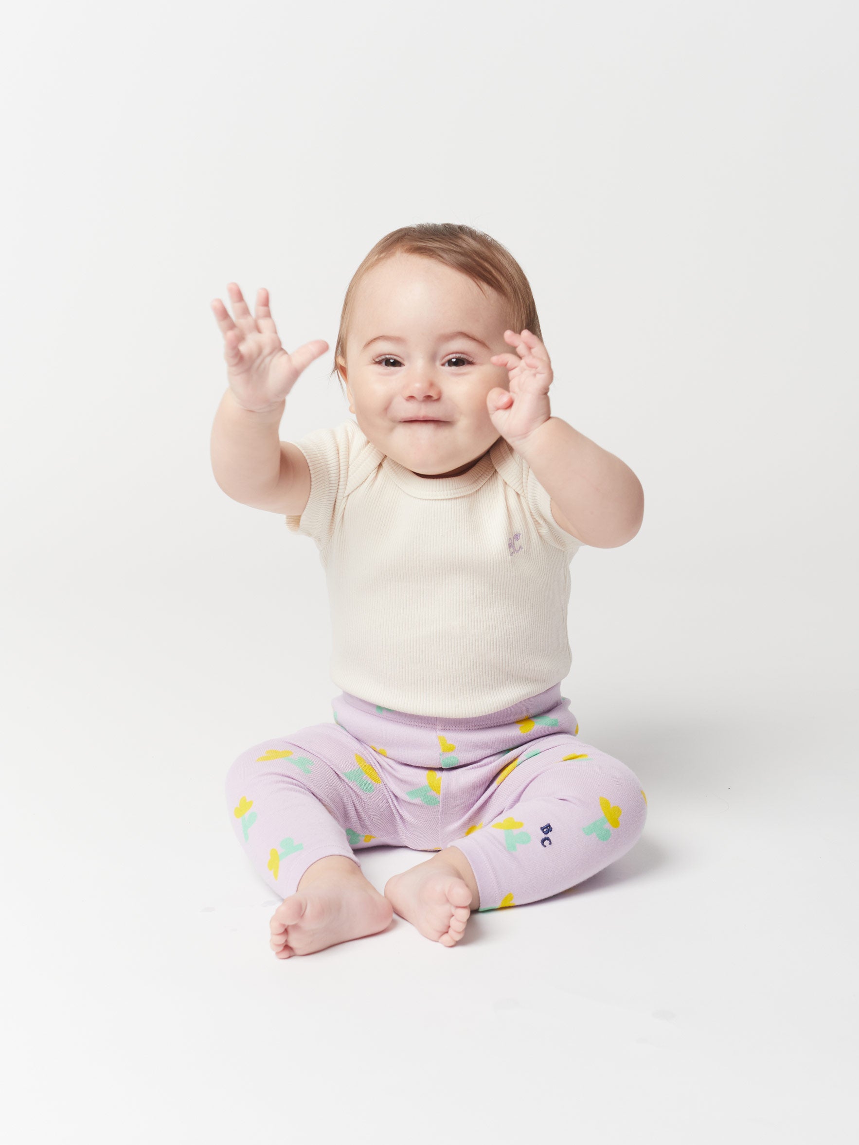 95% organic cotton 5% elastane lavender leggings. Designed with elasticated waistband and embroidery. It has a slim fit. Made in Spain
