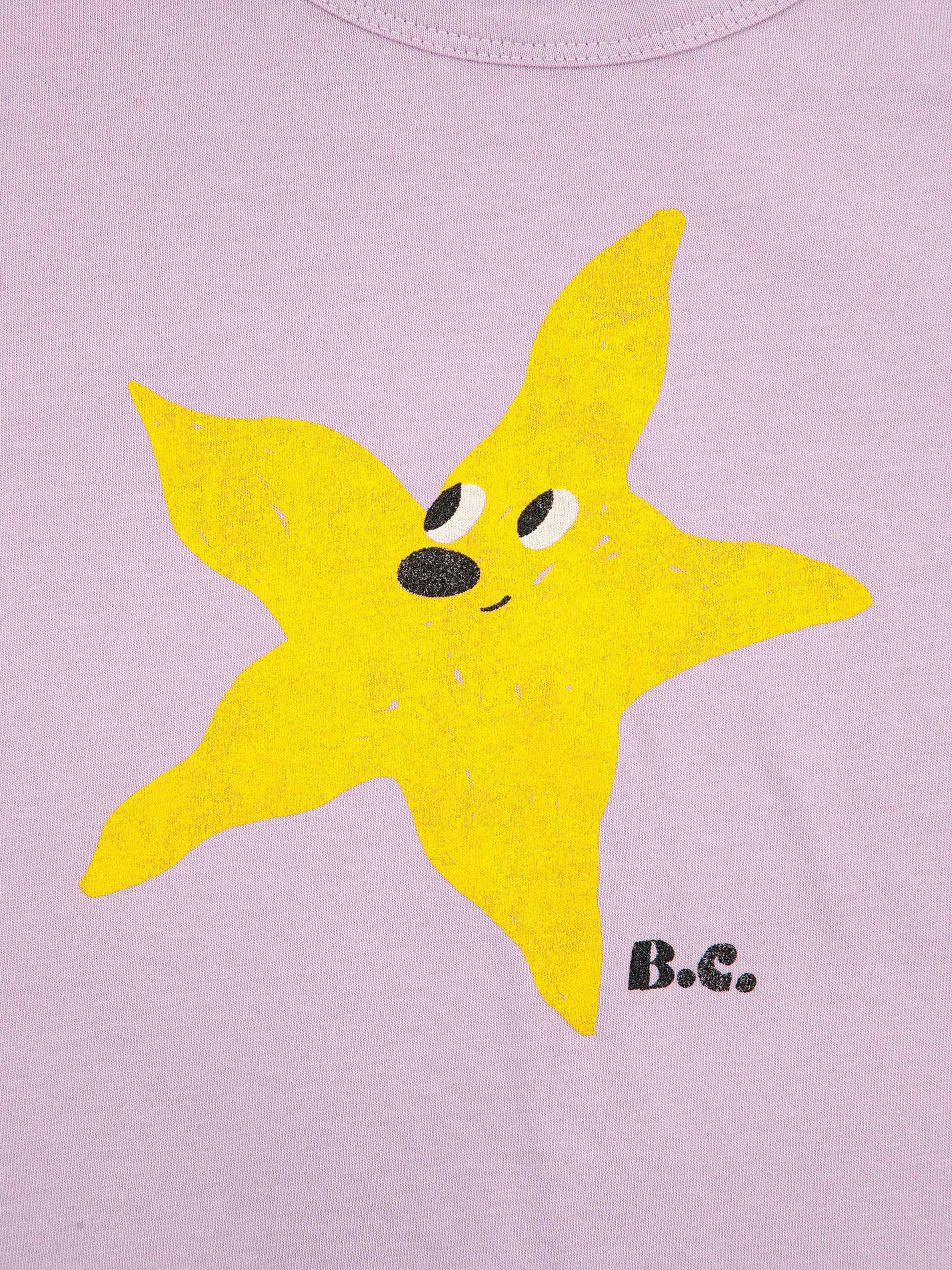100% BCI cotton lavender short sleeve t-shirt. Designed with short sleeves, dropped shoulder and shoulder snap fastening. It has a loose fit. Made in Portugal