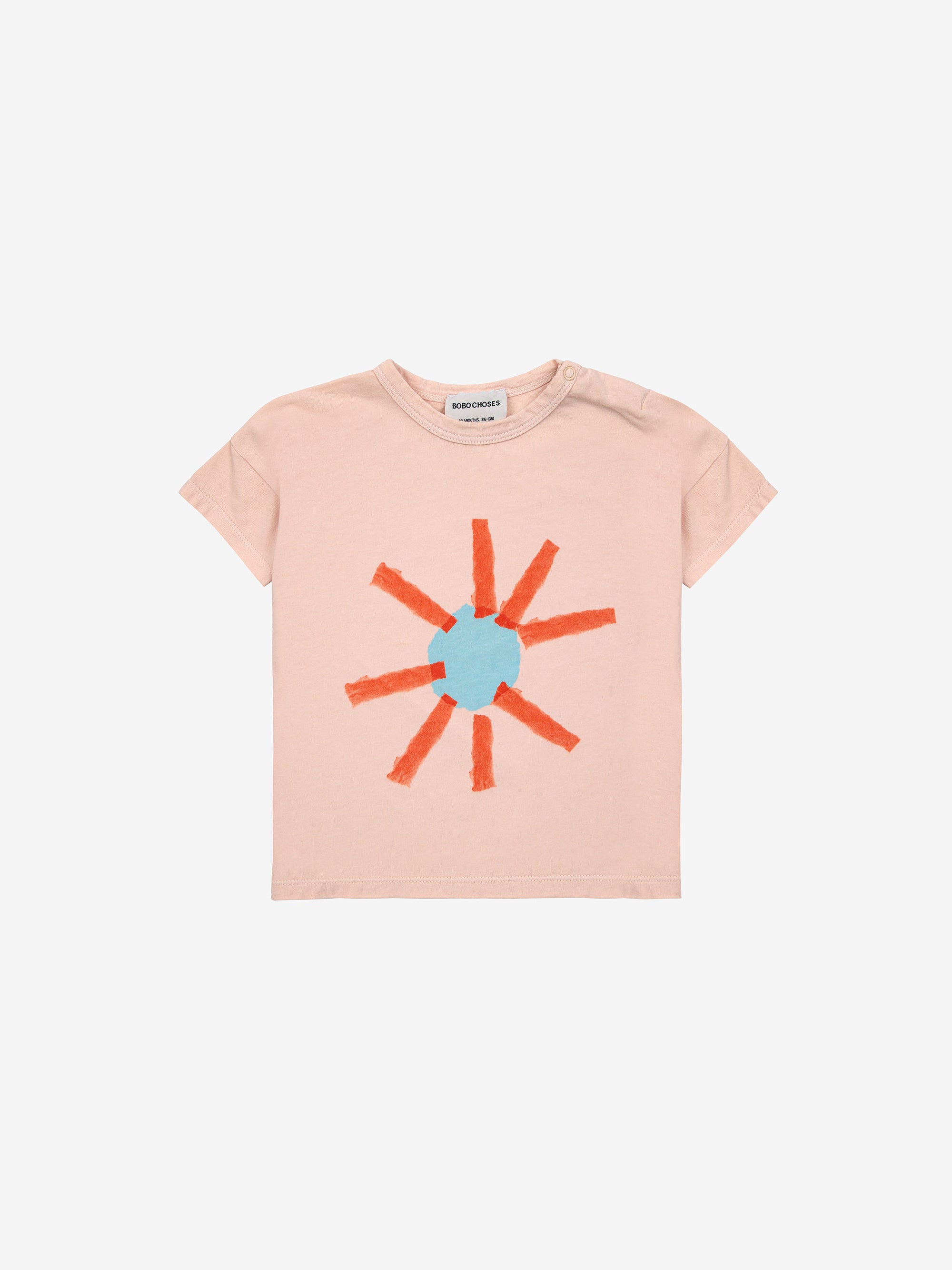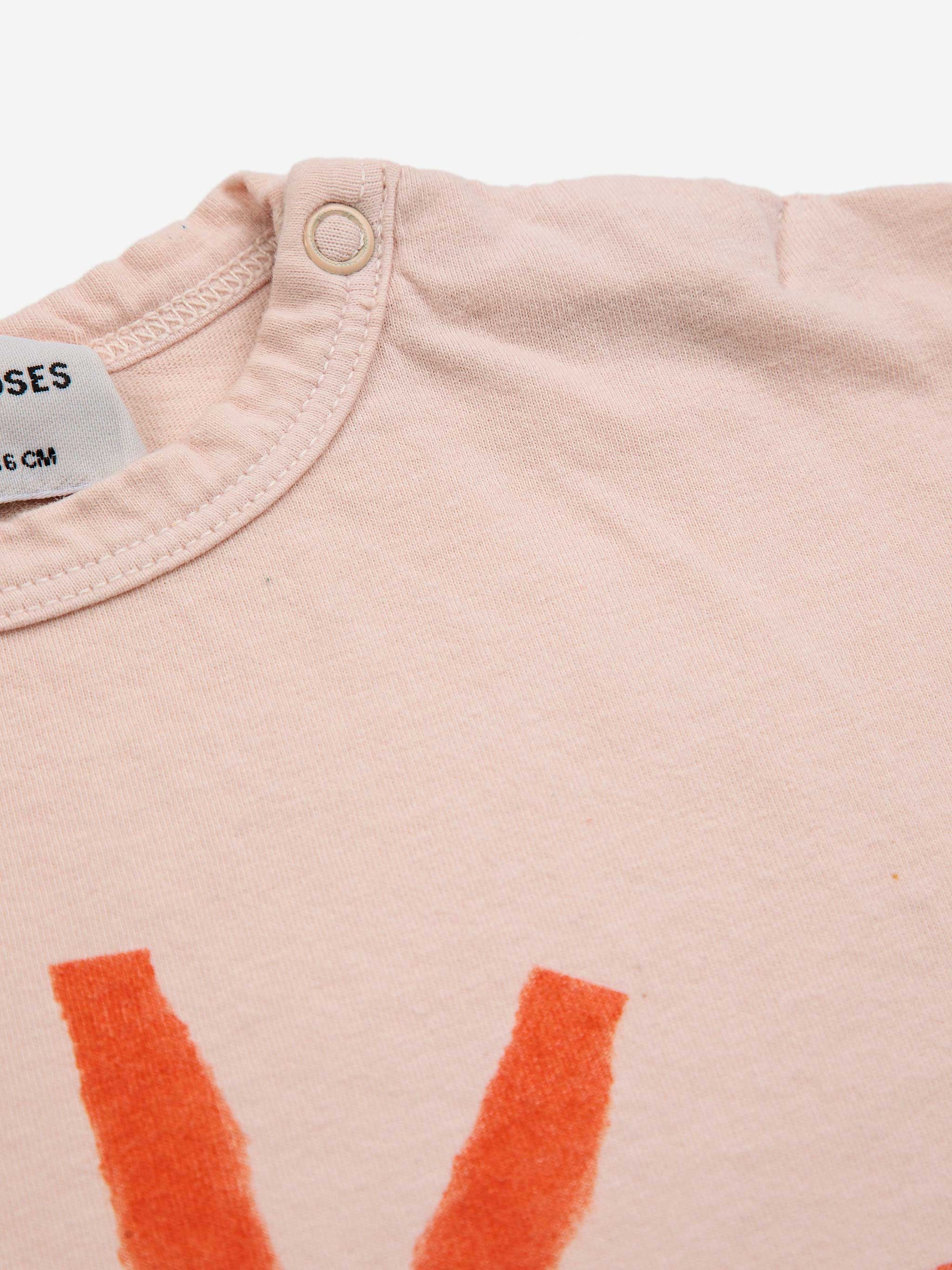 100% organic cotton light pink t-shirt. Designed with short sleeves, dropped shoulder, shoulder snap fastening and loose fit. Made in Portugal.